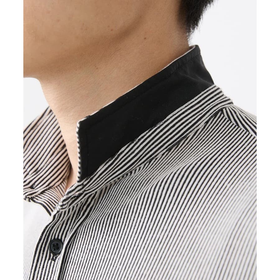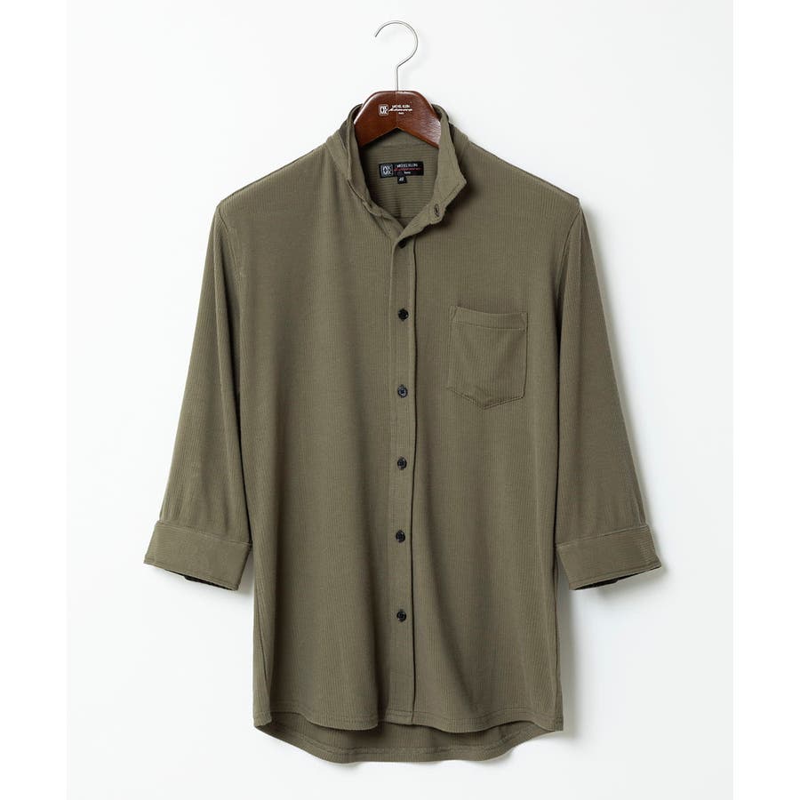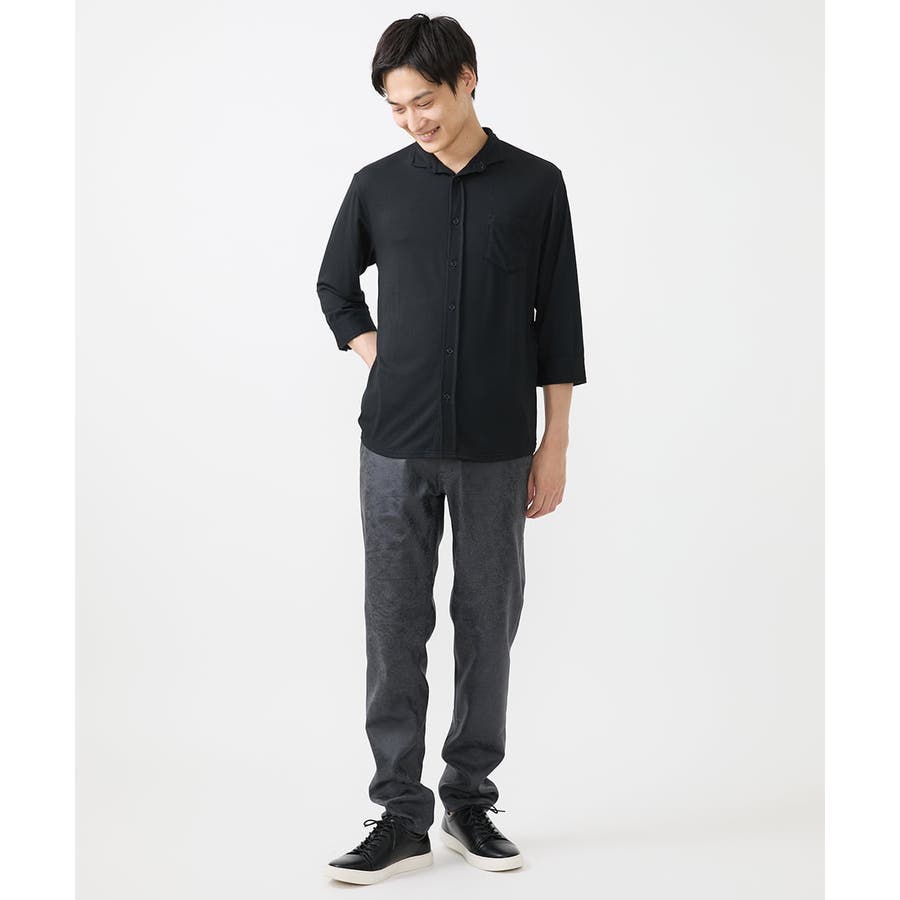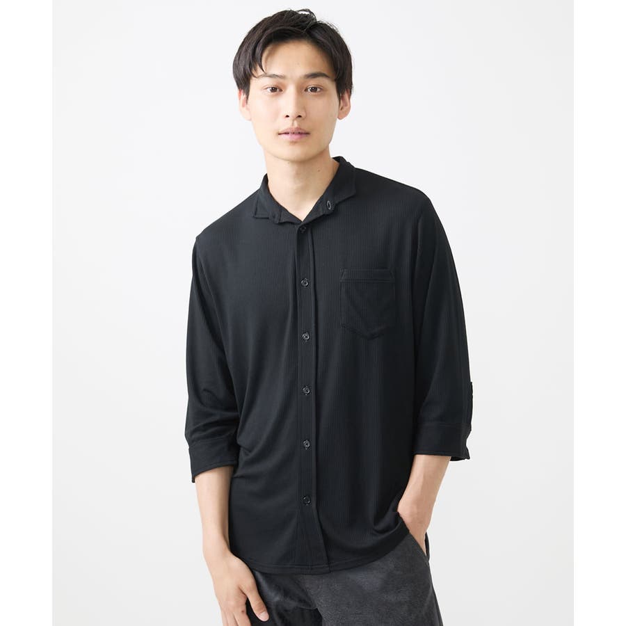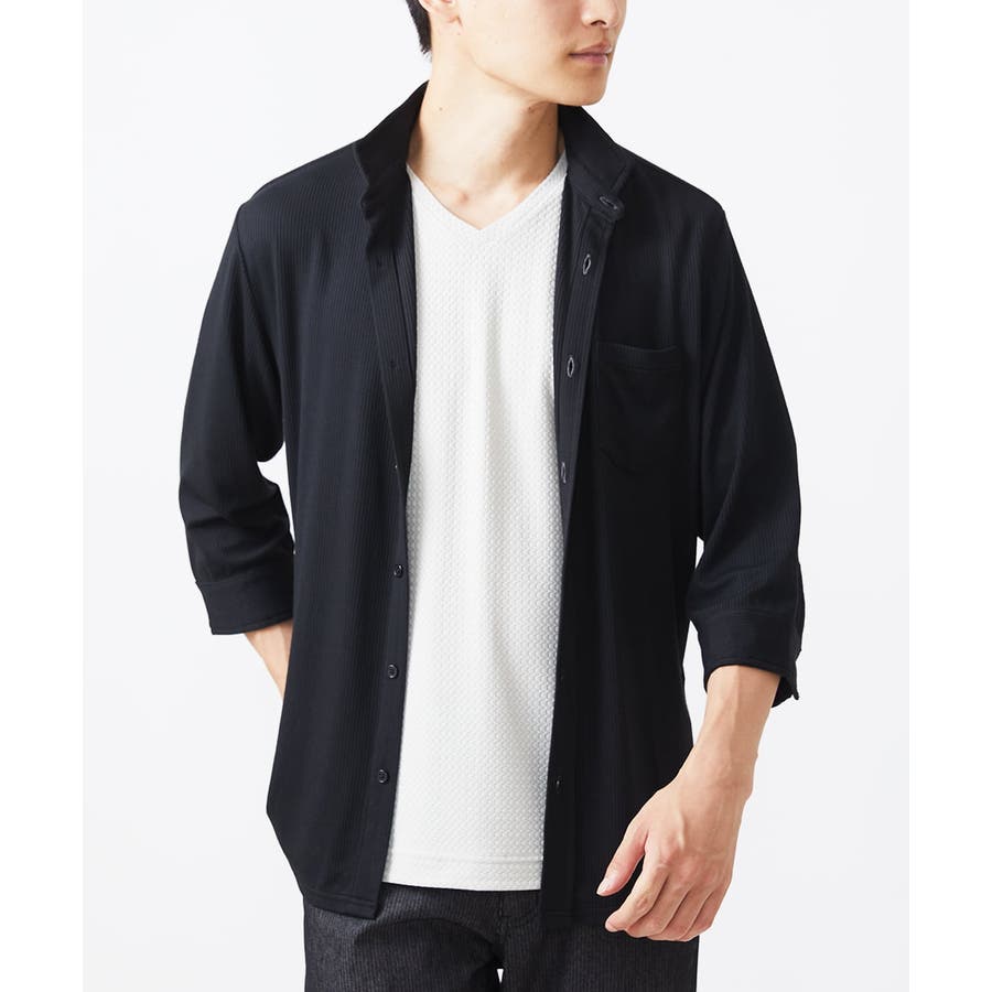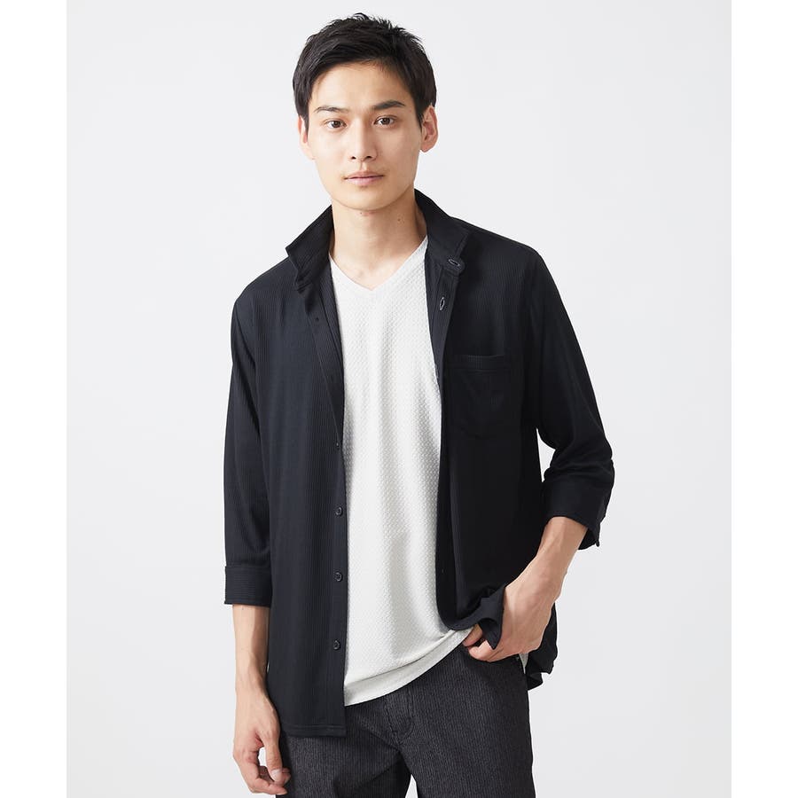 【大きいサイズあり】七分袖シャツ/ペンシルストライプジャージ