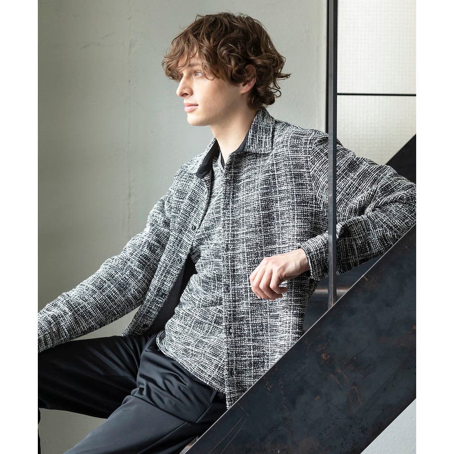 秋にはインナーに同素材のTシャツ【MKKJX07069】を合わせてクラシックなスタイルと幅広く着用が可能です。