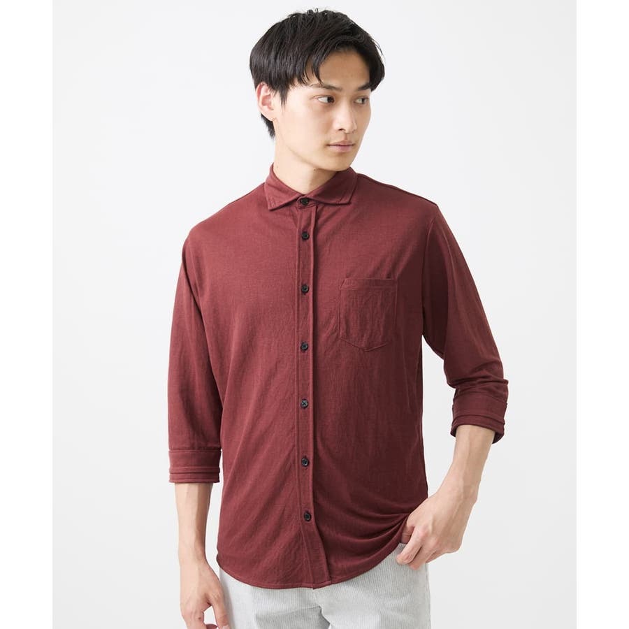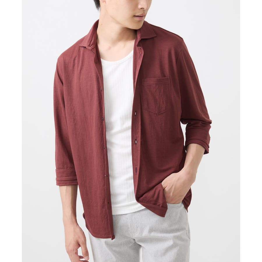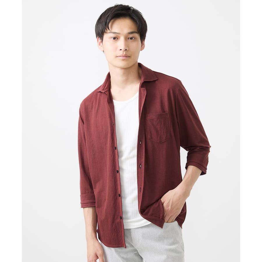 【大きいサイズあり】七分袖シャツ/ミストワッシャーカノコ