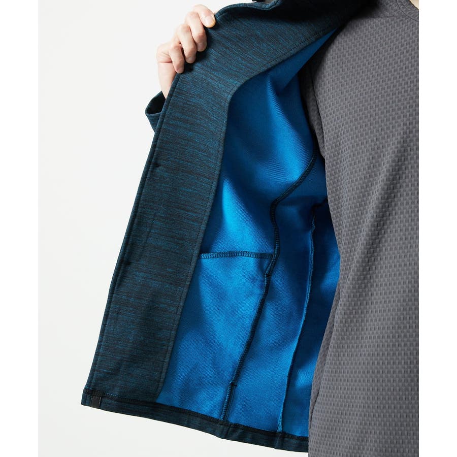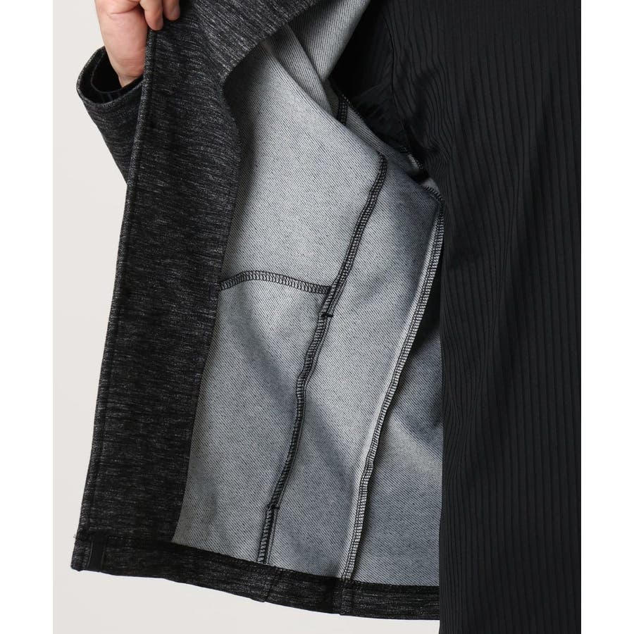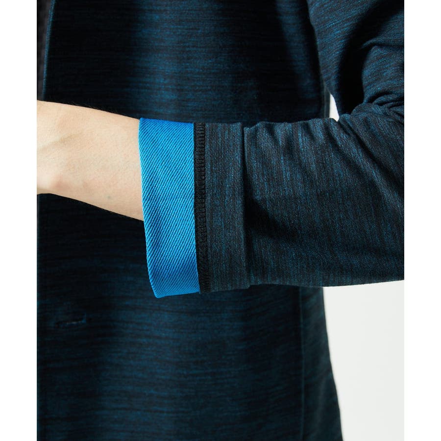 ・前開き仕様のスタンドカーディガンデザインを採用し、襟廻りに形状保持の「ワイヤー」を装備しました。襟が倒れる事無くしっかりと立ってくれます。
