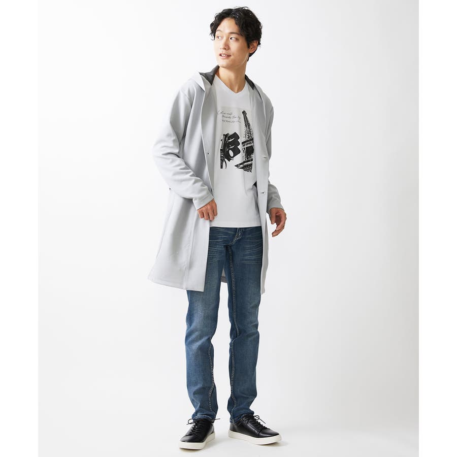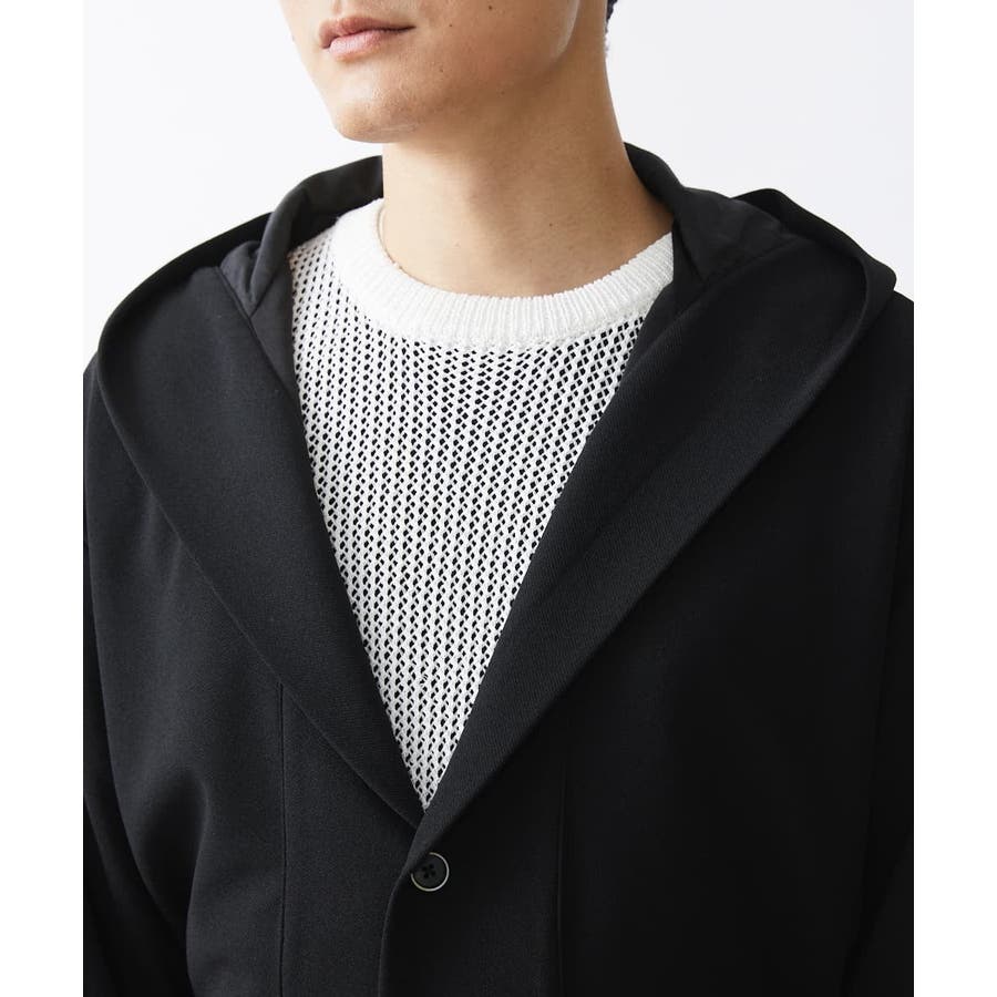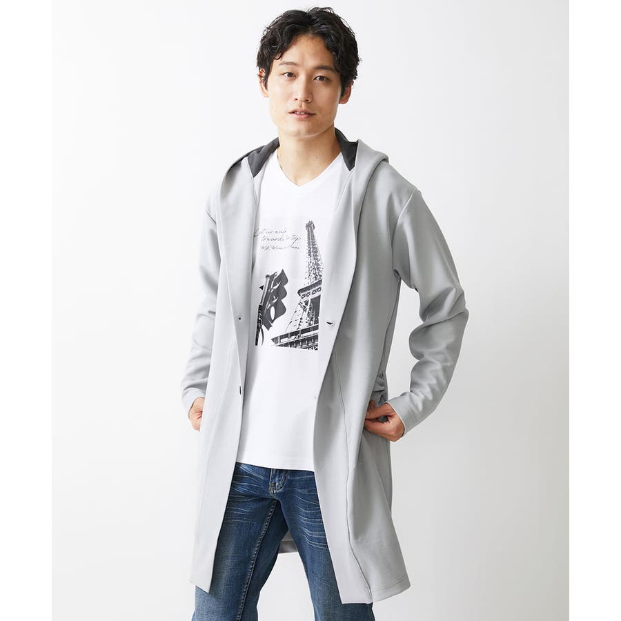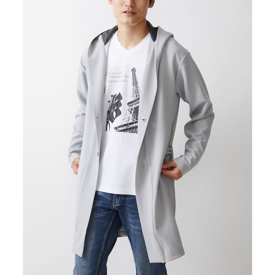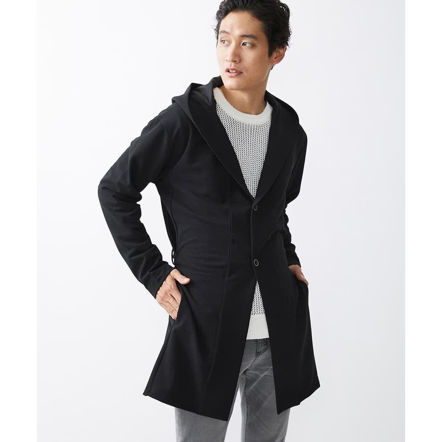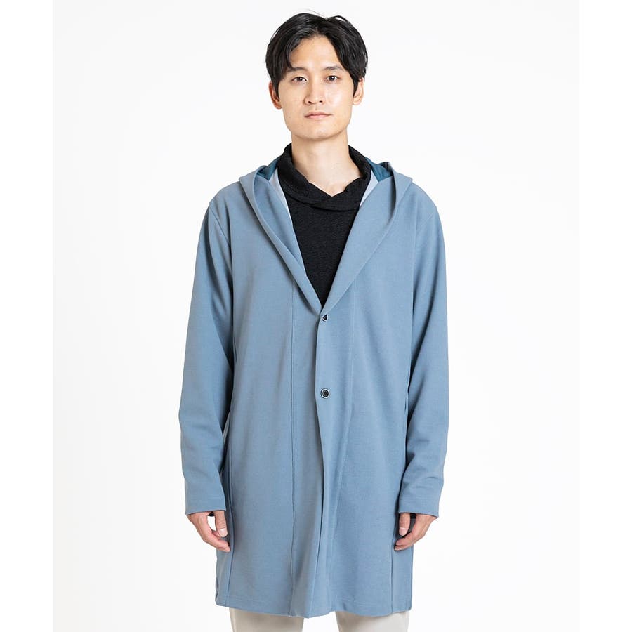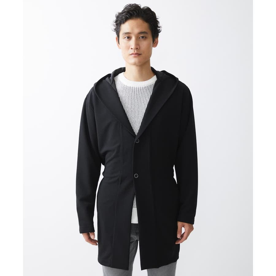 フード続きの膝上羽織りデザイン。