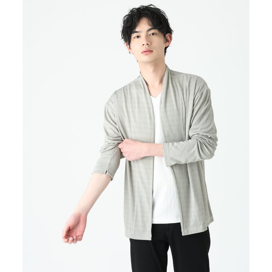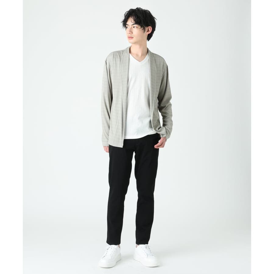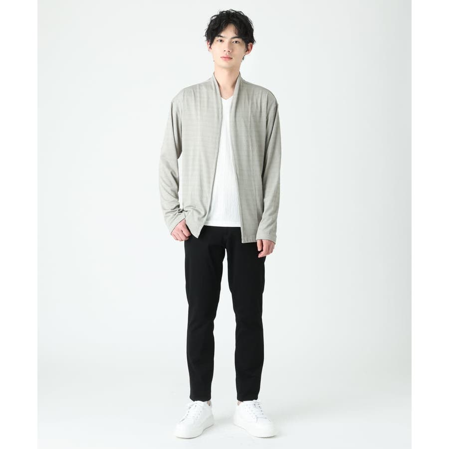 フロント釦がない着流しの細身のシルエットがシャープに見えるおしゃれなアイテム。