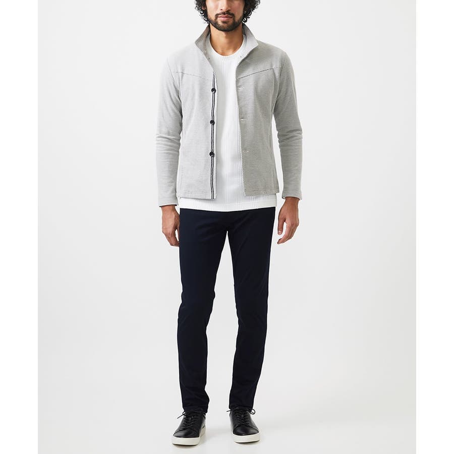 ・きれいめなスタイルに映えるスタンドカーディガンジャケット。