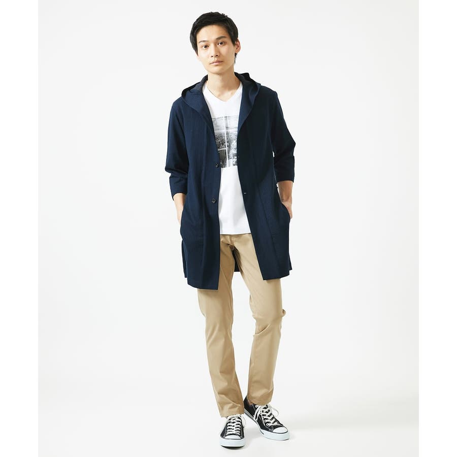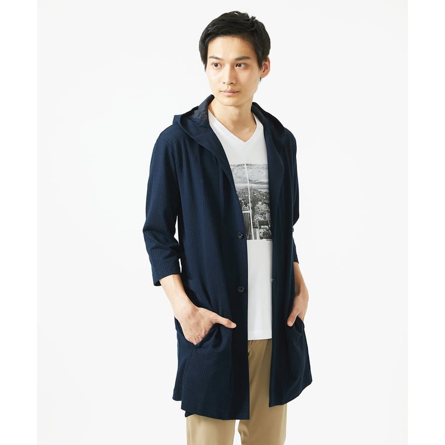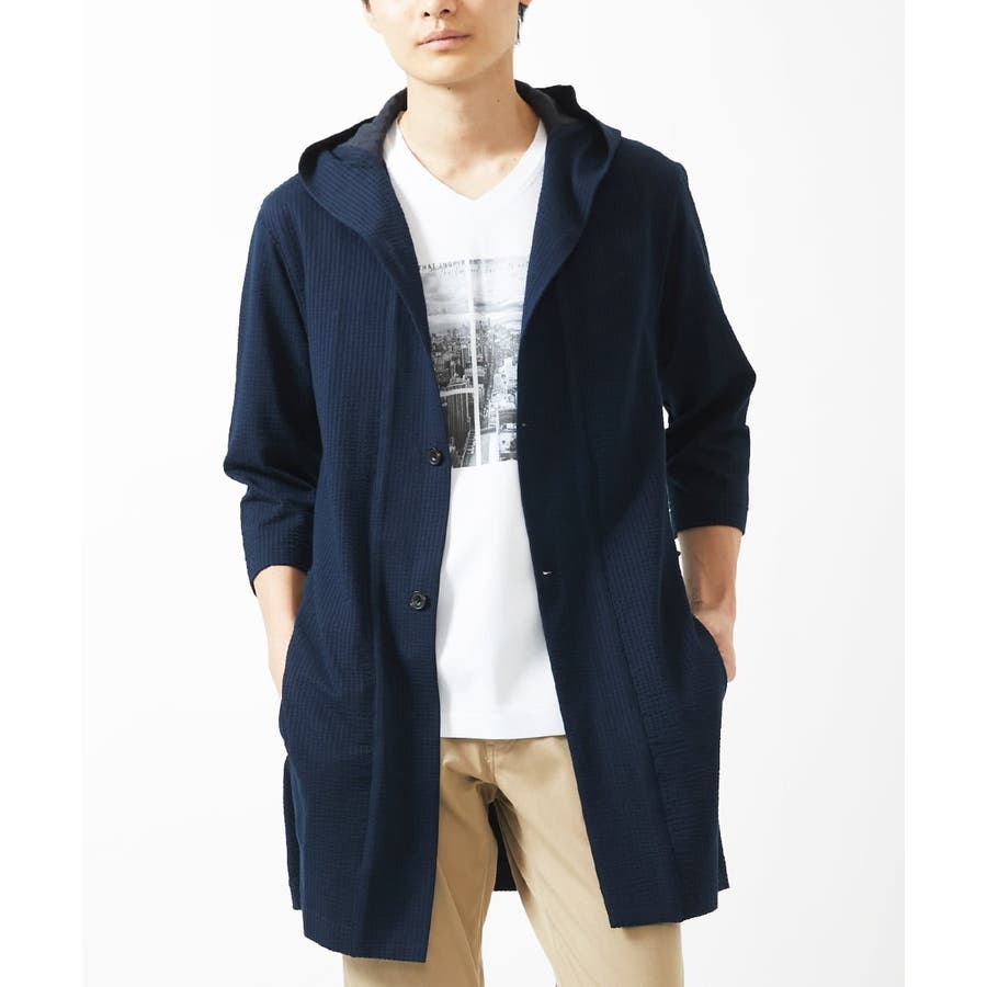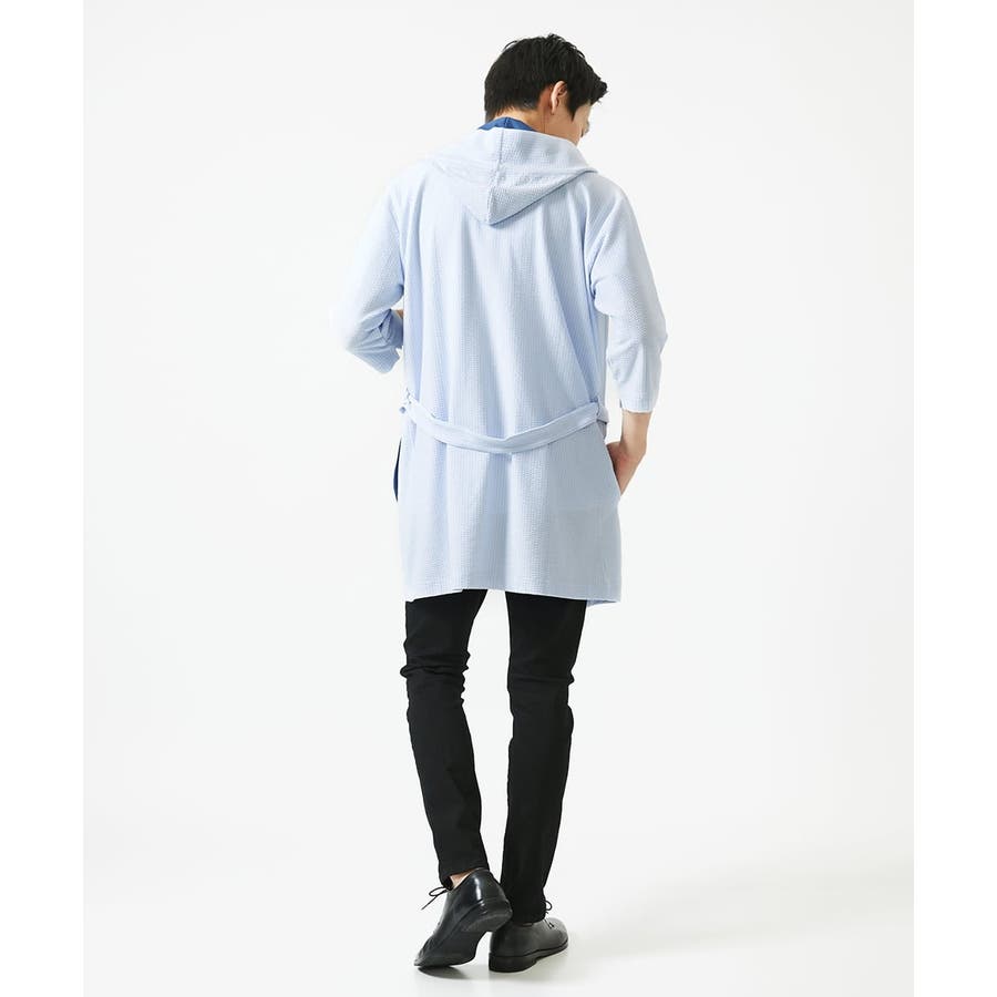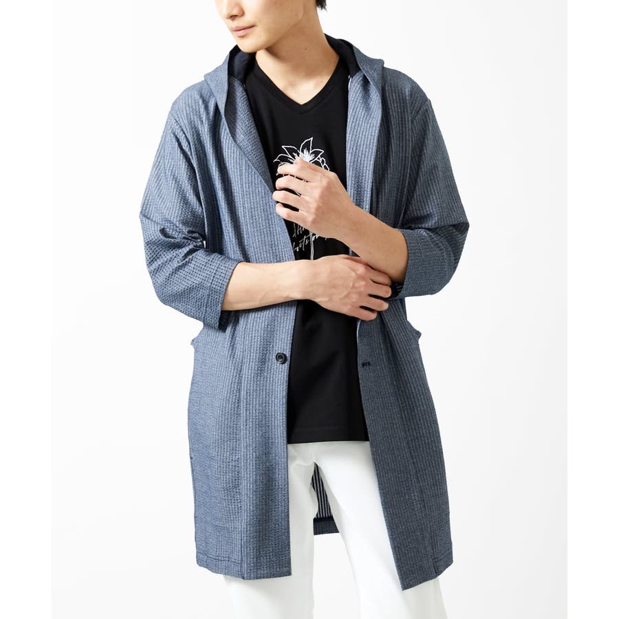 【残りわずか/ゆったりサイズ/洗える】サッカーストライプフードカーディガン