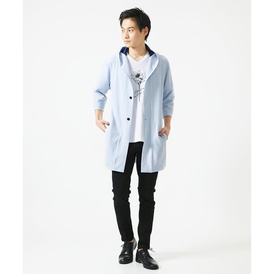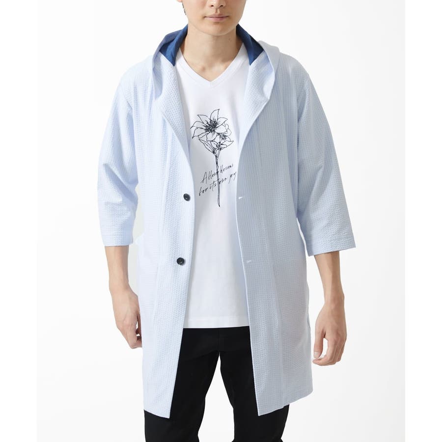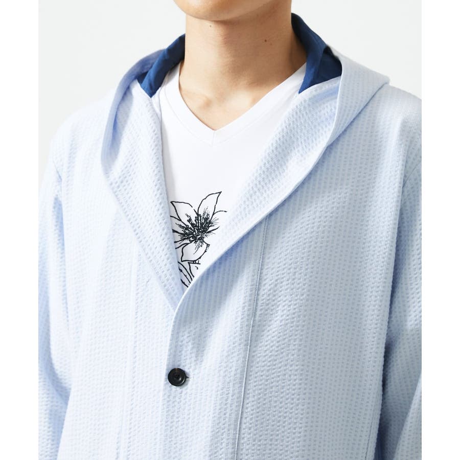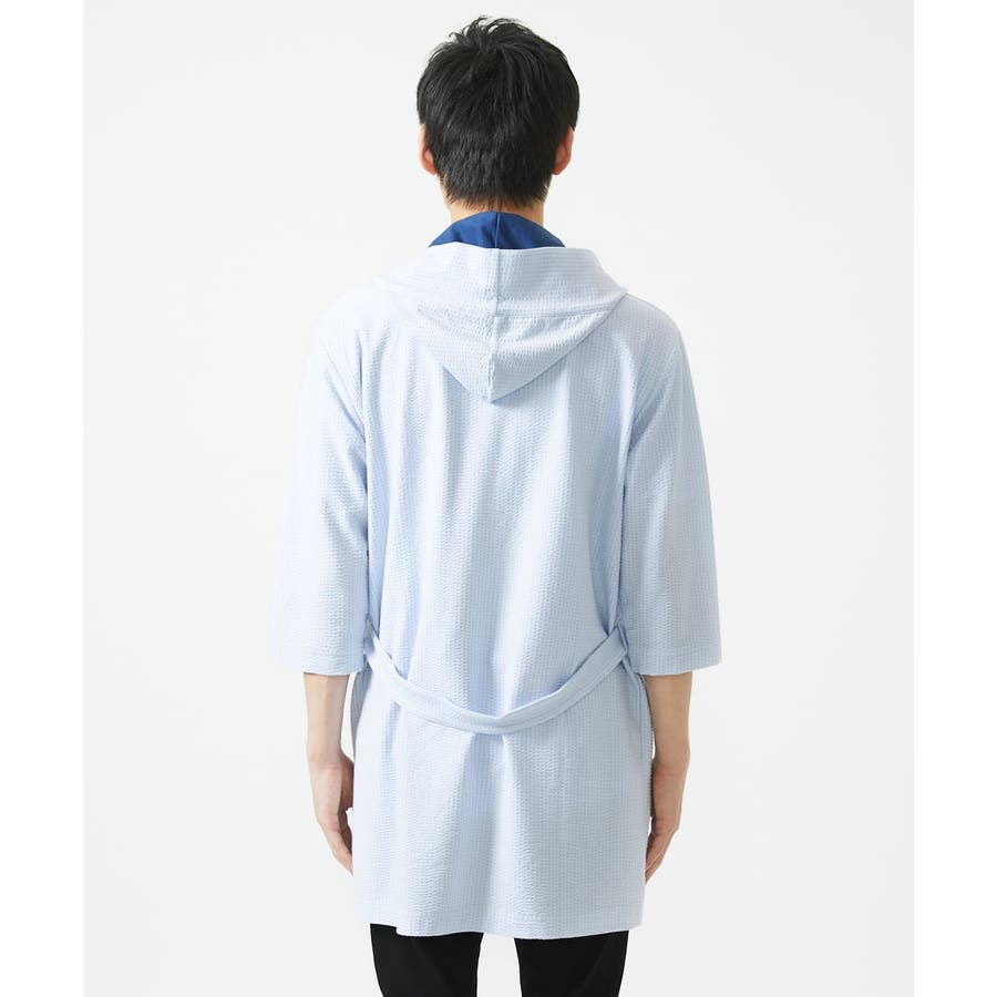 ・フード続きの膝上羽織りデザイン。