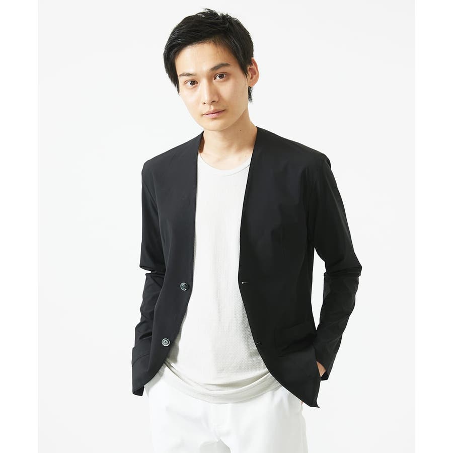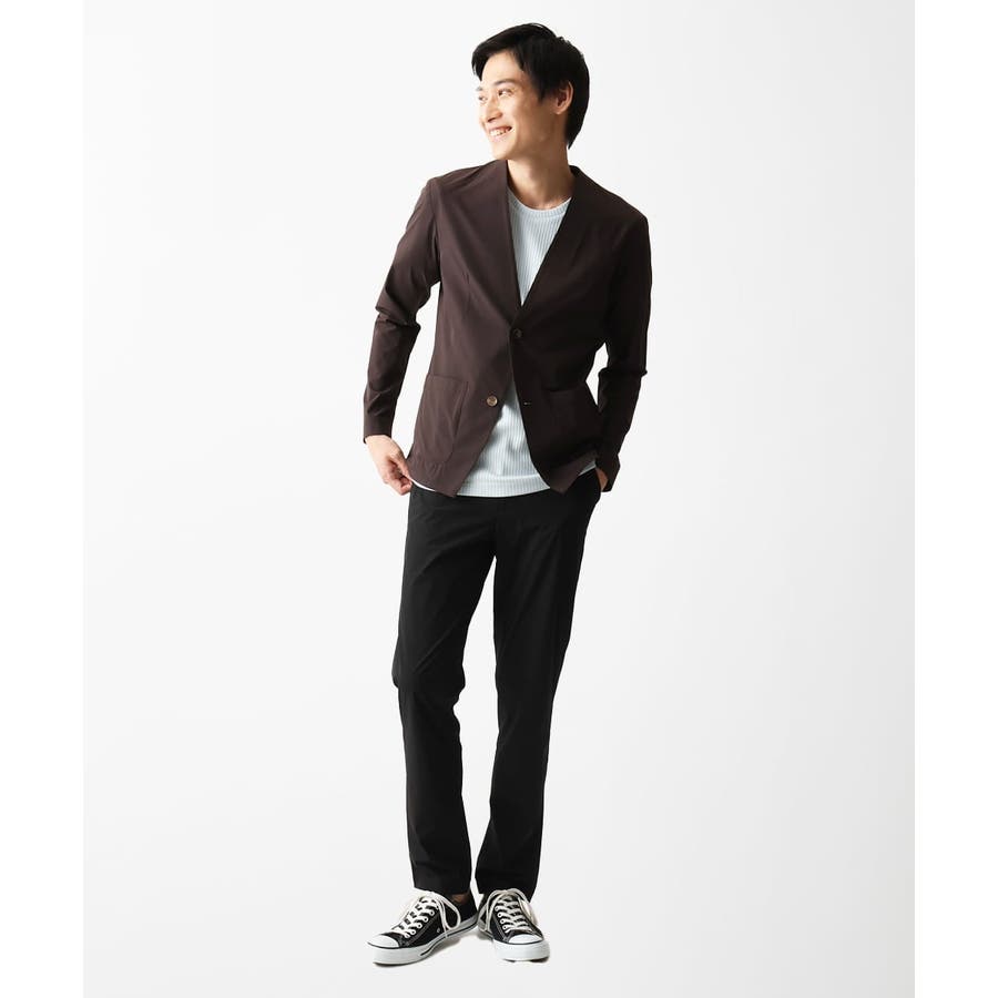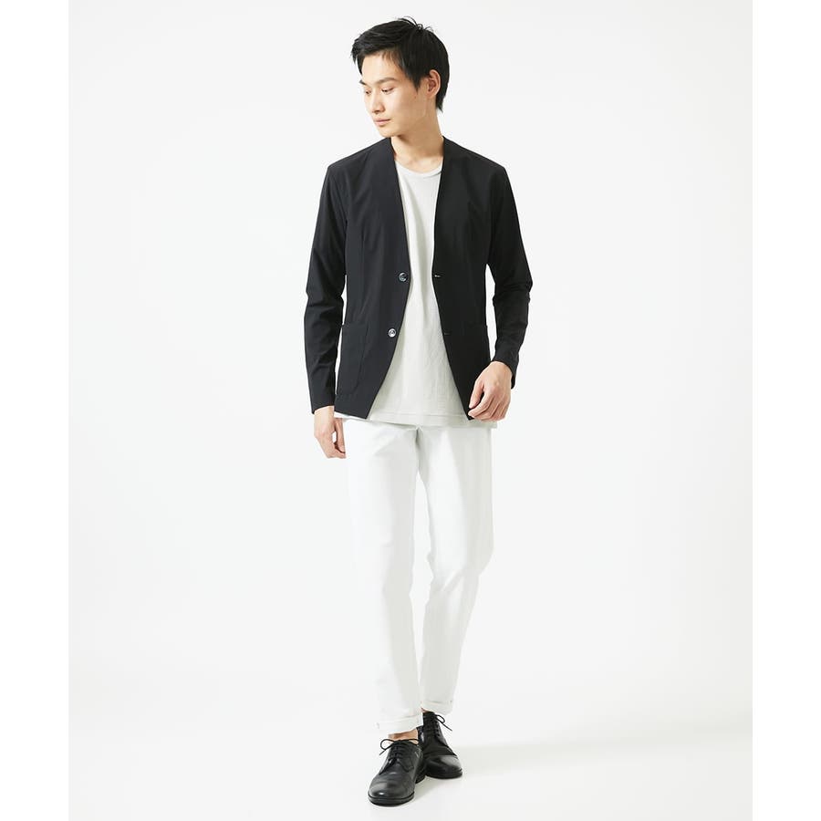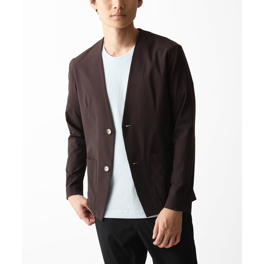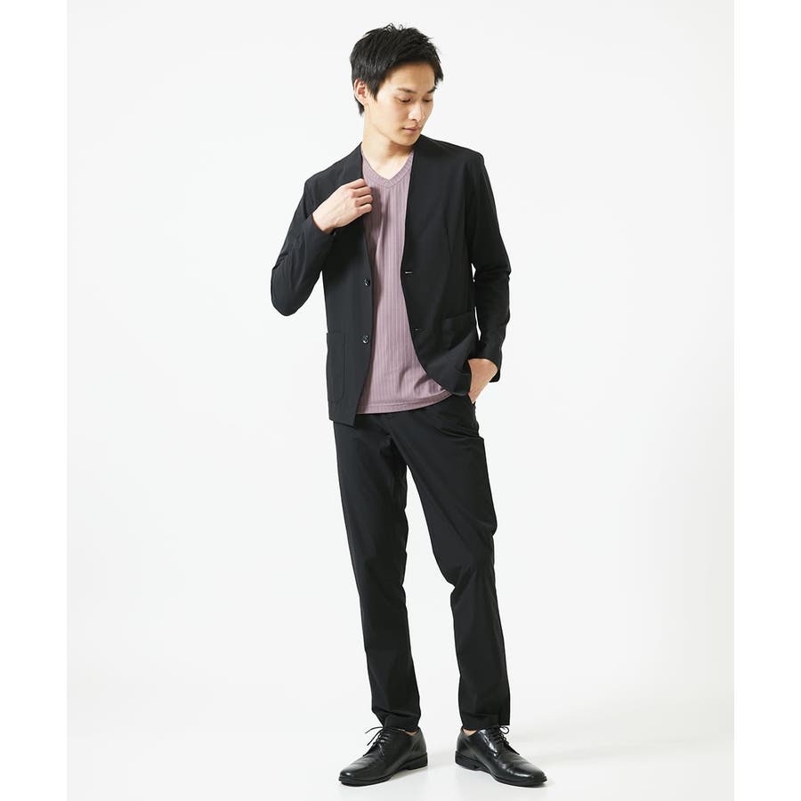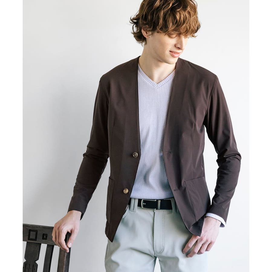 ・同素材のパンツでセットアップでお楽しみいただけます。 ・衿元がスッキリしたノーカラーのカーディガンタイプのジャケット羽織りデザイン。