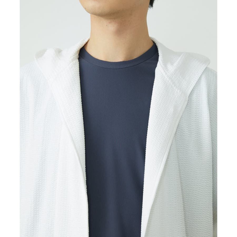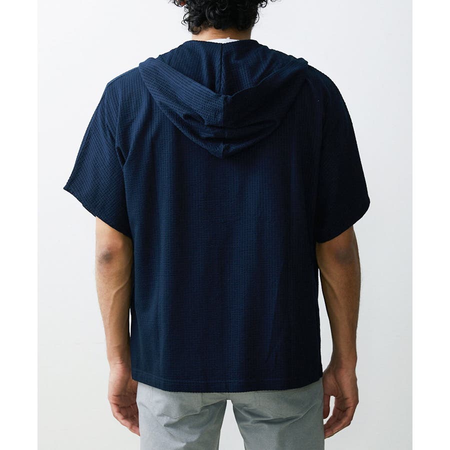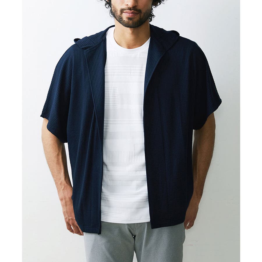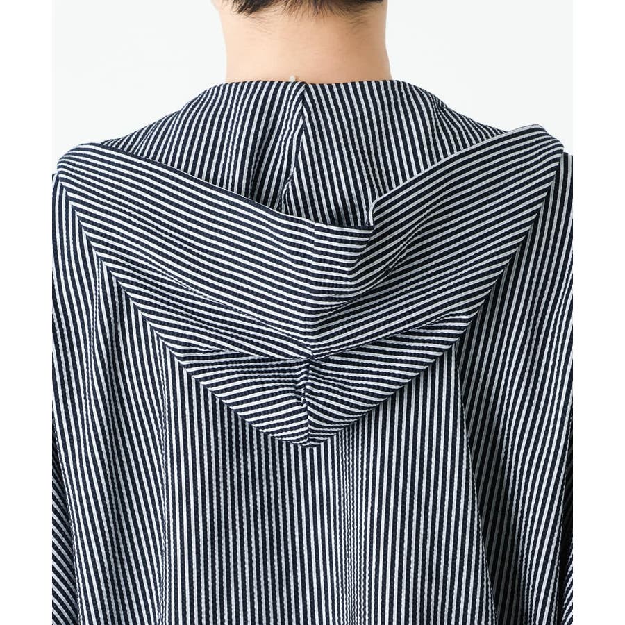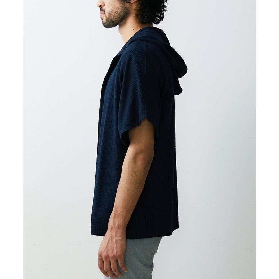 フード付きでカジュアルな印象をもたれがちですが、 凹凸のあるサッカー素材のシックな雰囲気とマッチしております。