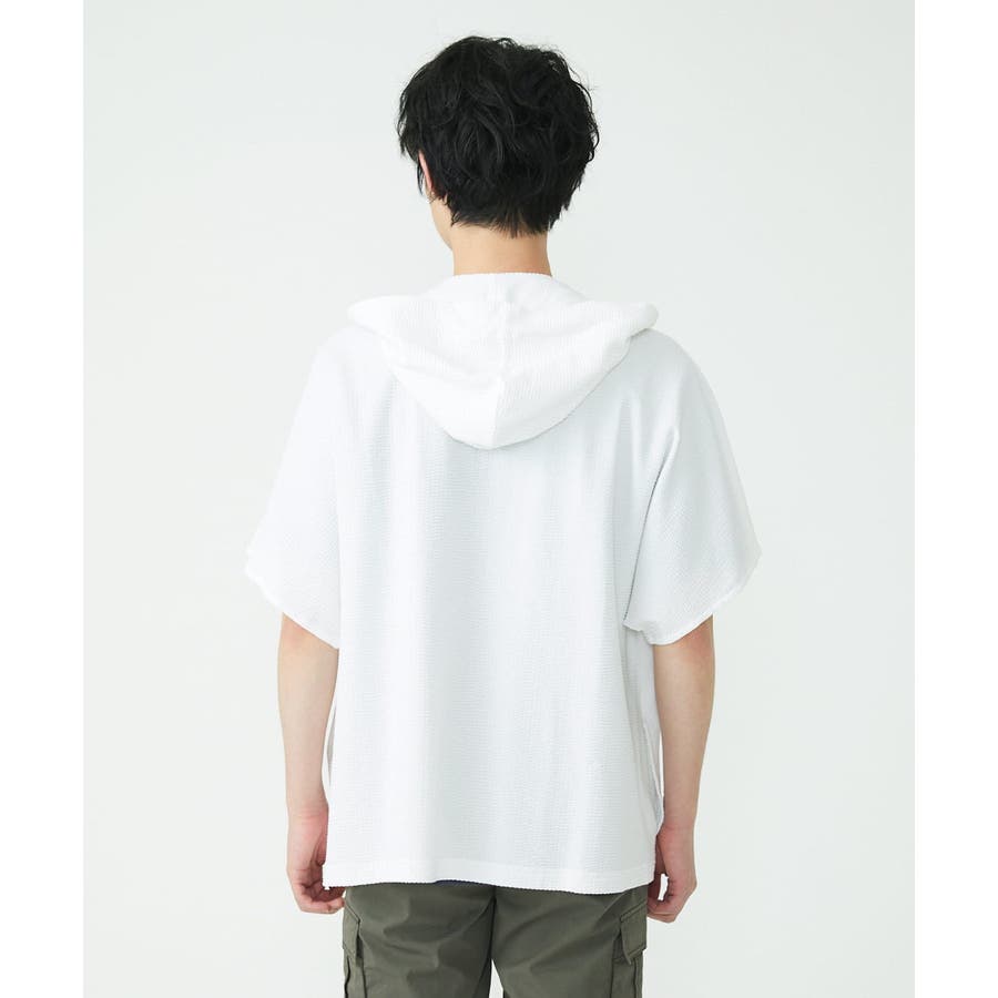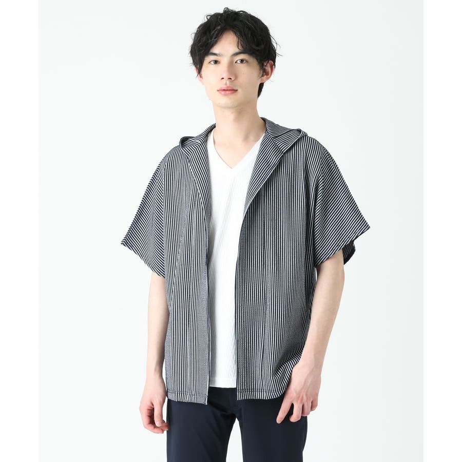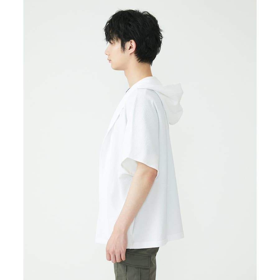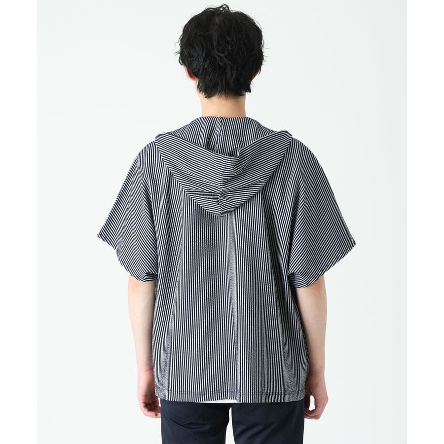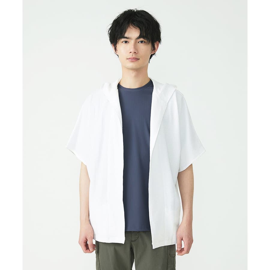 フード付きでカジュアルな印象をもたれがちですが、 凹凸のあるサッカー素材のシックな雰囲気とマッチしております。
