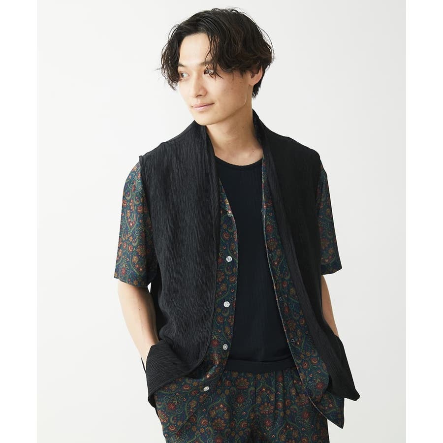 ・袖なしのジレタイプでTシャツの上からプラスワンアイテムとして軽く羽織れます。 ・ゆとりのあるリラックスシルエット。