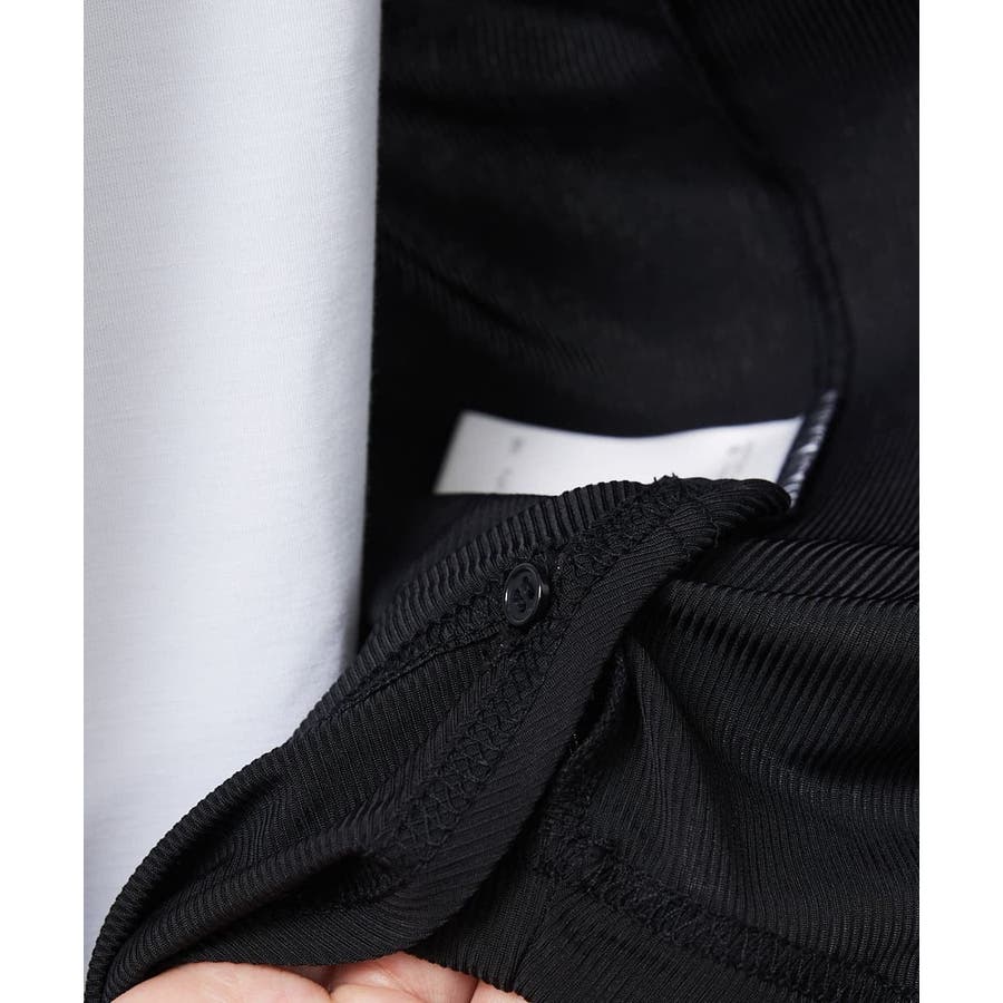・裾に留めボタンがついているので、閉めて着用することで胸元のドレープ感がでます。