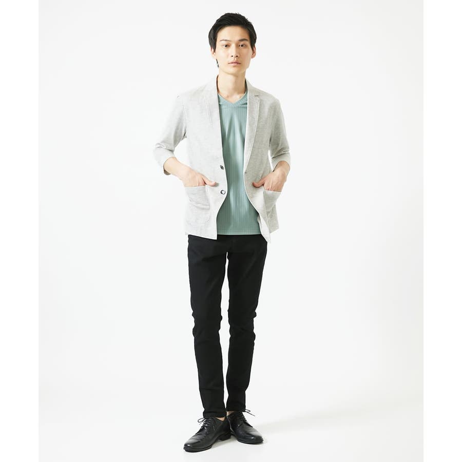 ・小ぶりなラペル衿でカジュアルからきれいめに着まわせます。