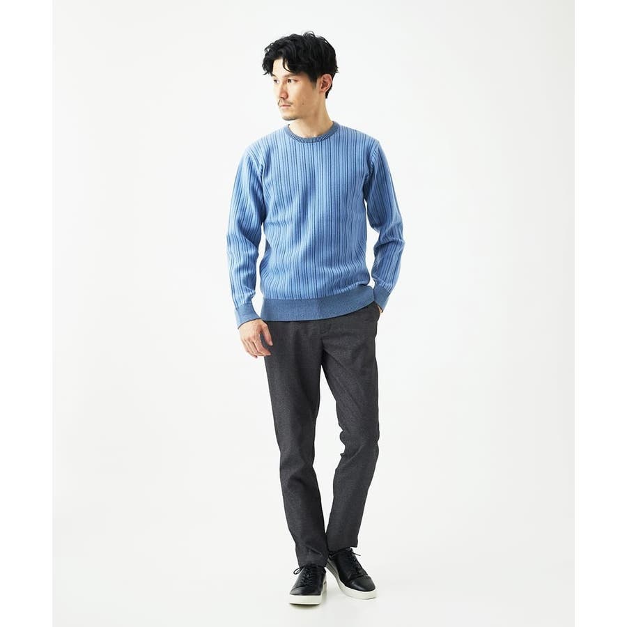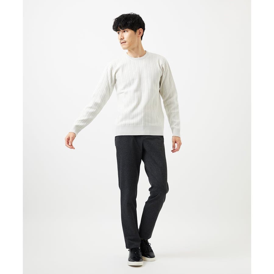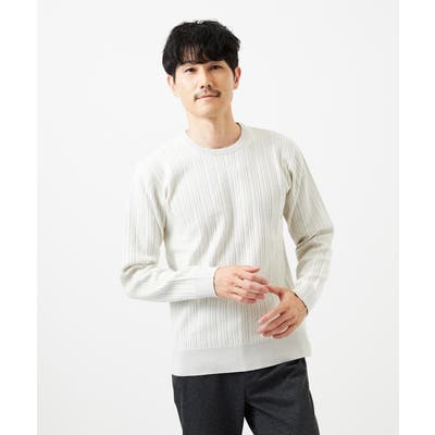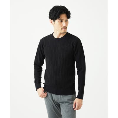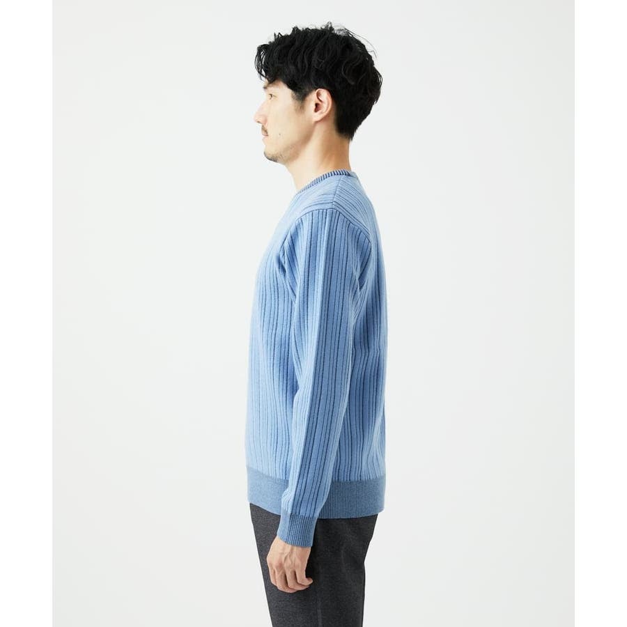 【クルーネック/洗濯機で洗える】ランダムタックストライプクルーネックニット