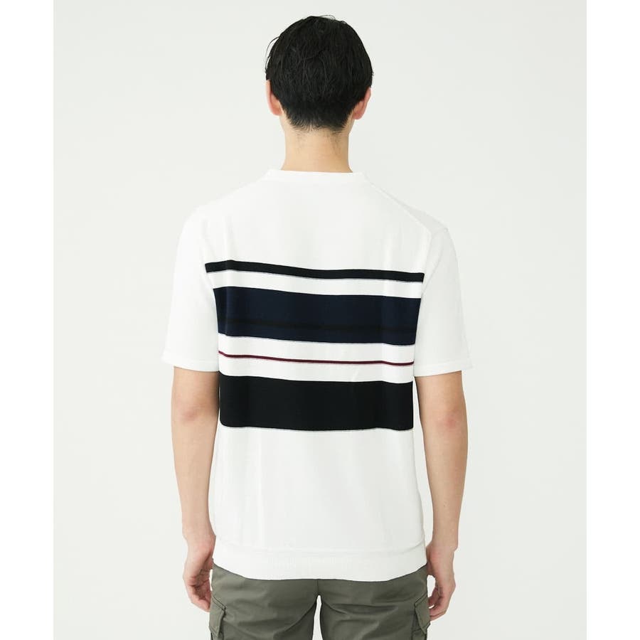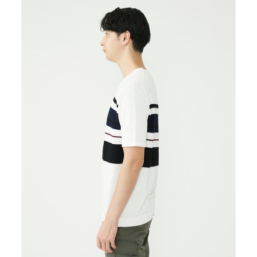 ニットと聞くと暑そうな印象を持たれてしまうと思いますが、 こちらはドライタッチな風合いが特徴のコットン素材なので Tシャツに比べるとしっかりはありますが軽い風合いでストレッチも効いているので夏から秋にピッタリの1着です。
