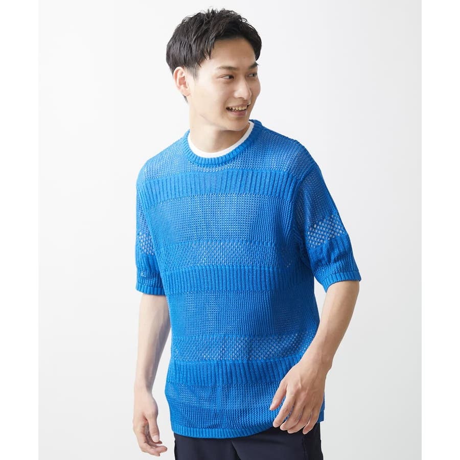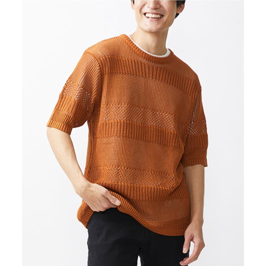 ・メッシュ編み、リブ編みといったテクニックを使用した編地。