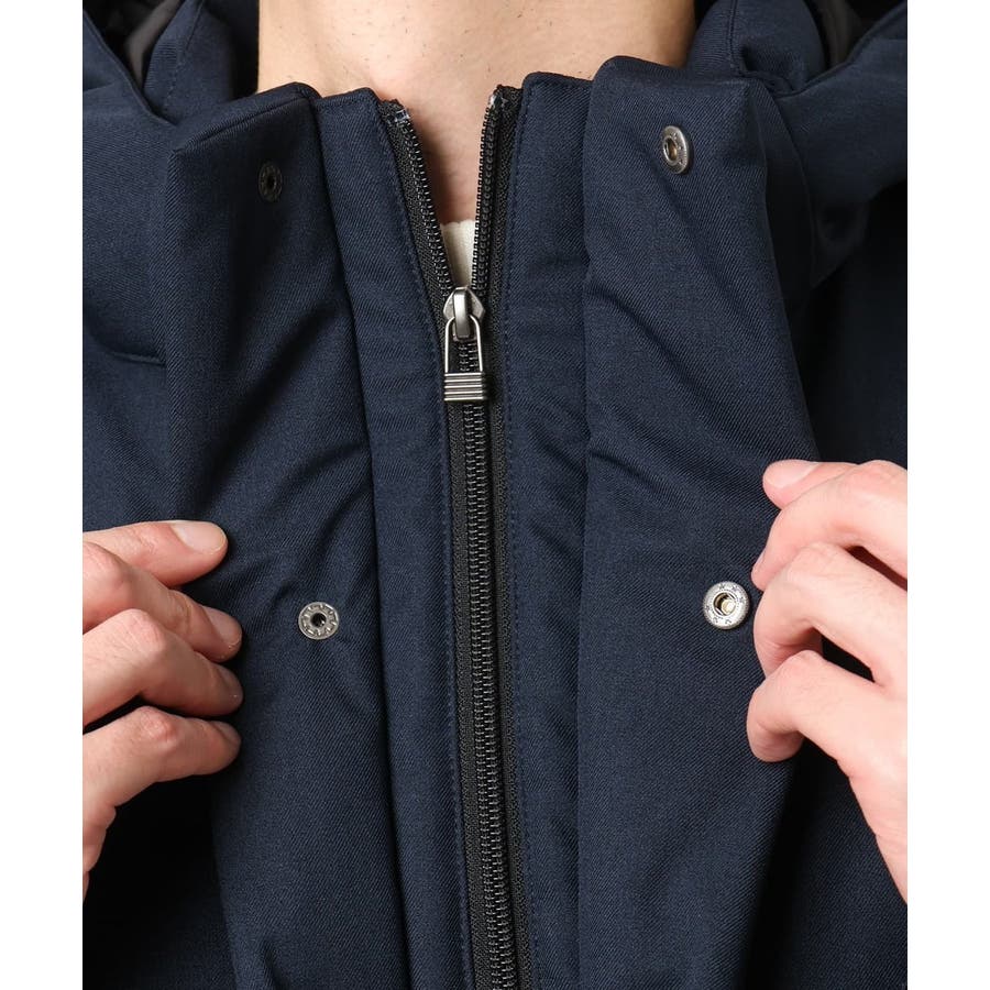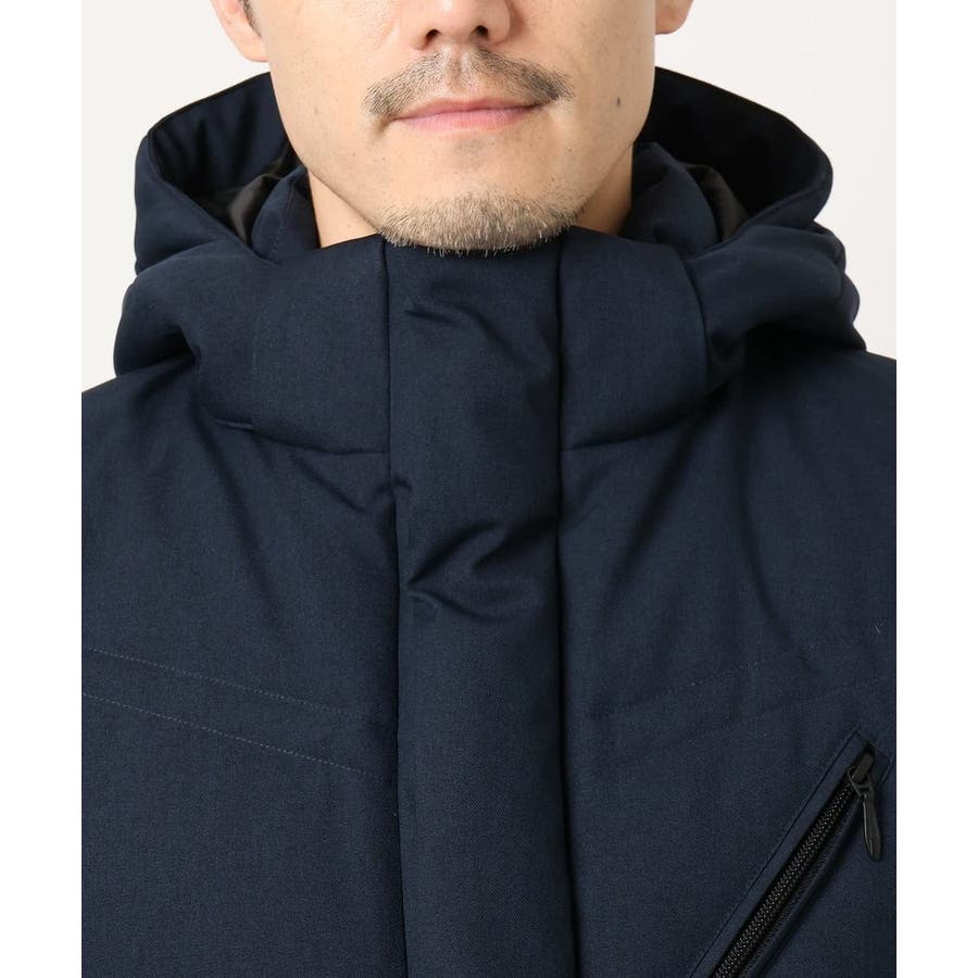 最大の特長は、パーツごとに充填物を変えた「ハイブリッド仕様」。防寒性を求められる前後身頃・外袖・衿・フードにはダウンを使用し、軽さと保温性をしっかり確保。一方で、動きの多い脇・前立て・内袖・フード前端には軽量な中綿を配置することで、着心地の軽さや動きやすさにも配慮し、防寒と機動性、両立を追求した設計です。