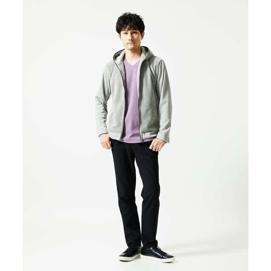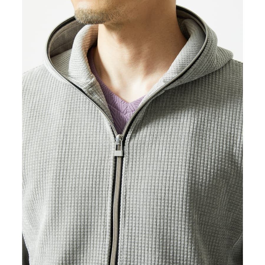 【洗える/ストレッチ】ワッフルベロア ジップパーカー