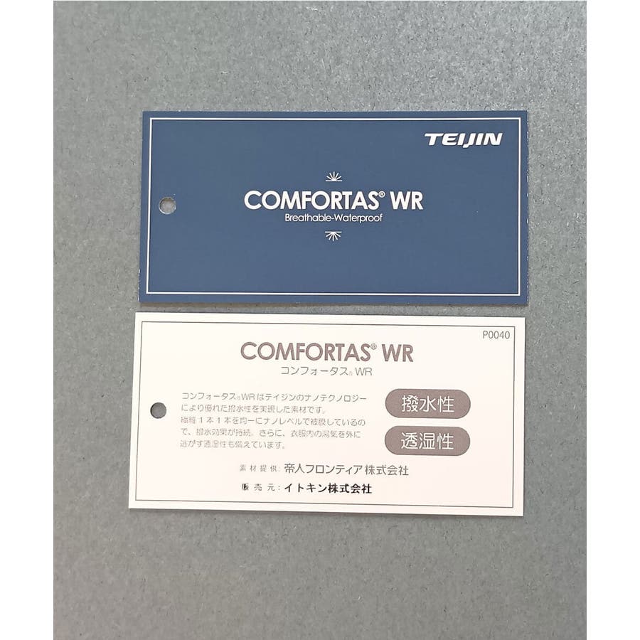 雨をはじき、ムレを逃がす高機能素材【COMFORTAS WR】に、環境に配慮したリサイクルポリエステル【ECOPET】をブレンド。 天候に左右されないタフさ、マットで落ち着いた表情と、しなやかで柔らかな風合いが特徴。