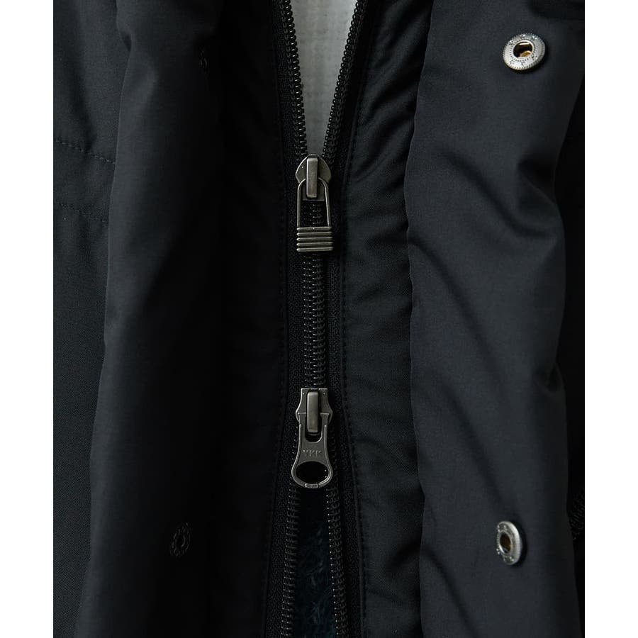 フロントの前立ては2重構造で、前からの冷たい風の侵入をしっかりガード。見た目だけでなく実用性や防寒性能にもこだわったディテールで、快適な冬の外出をサポートします。