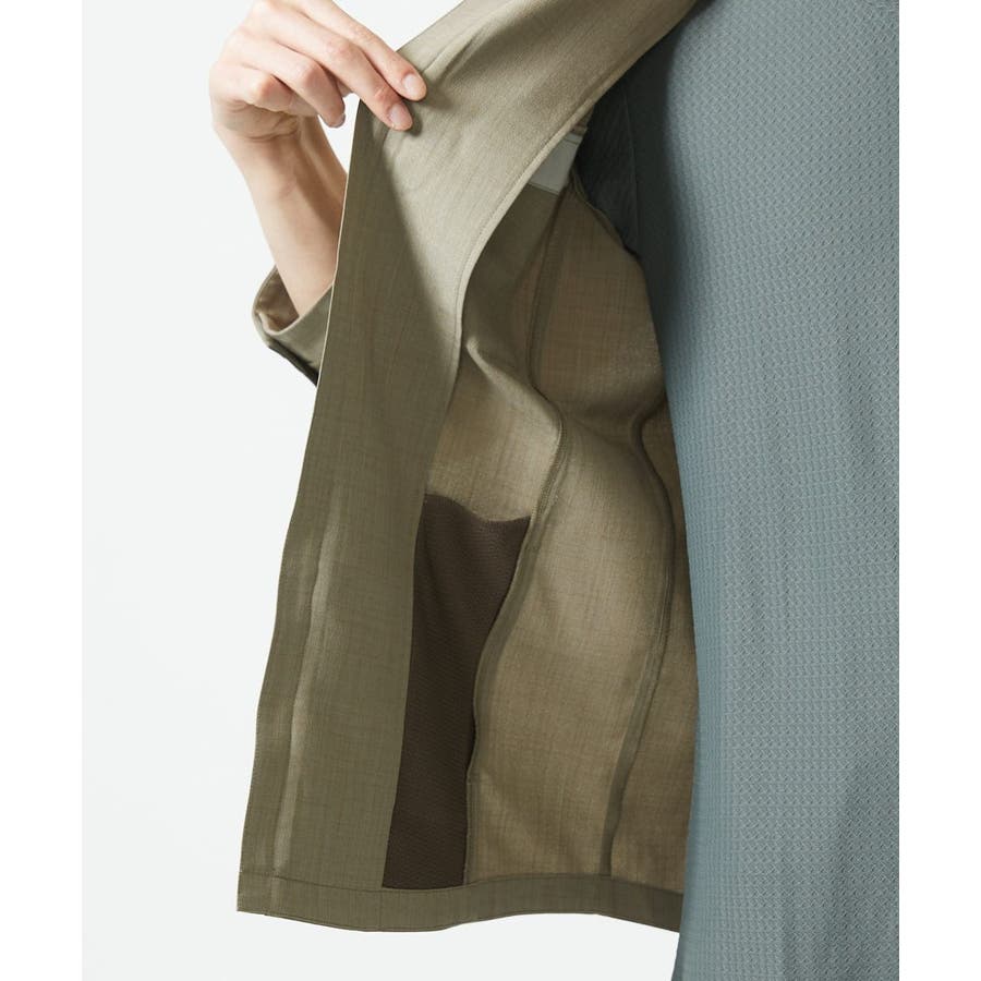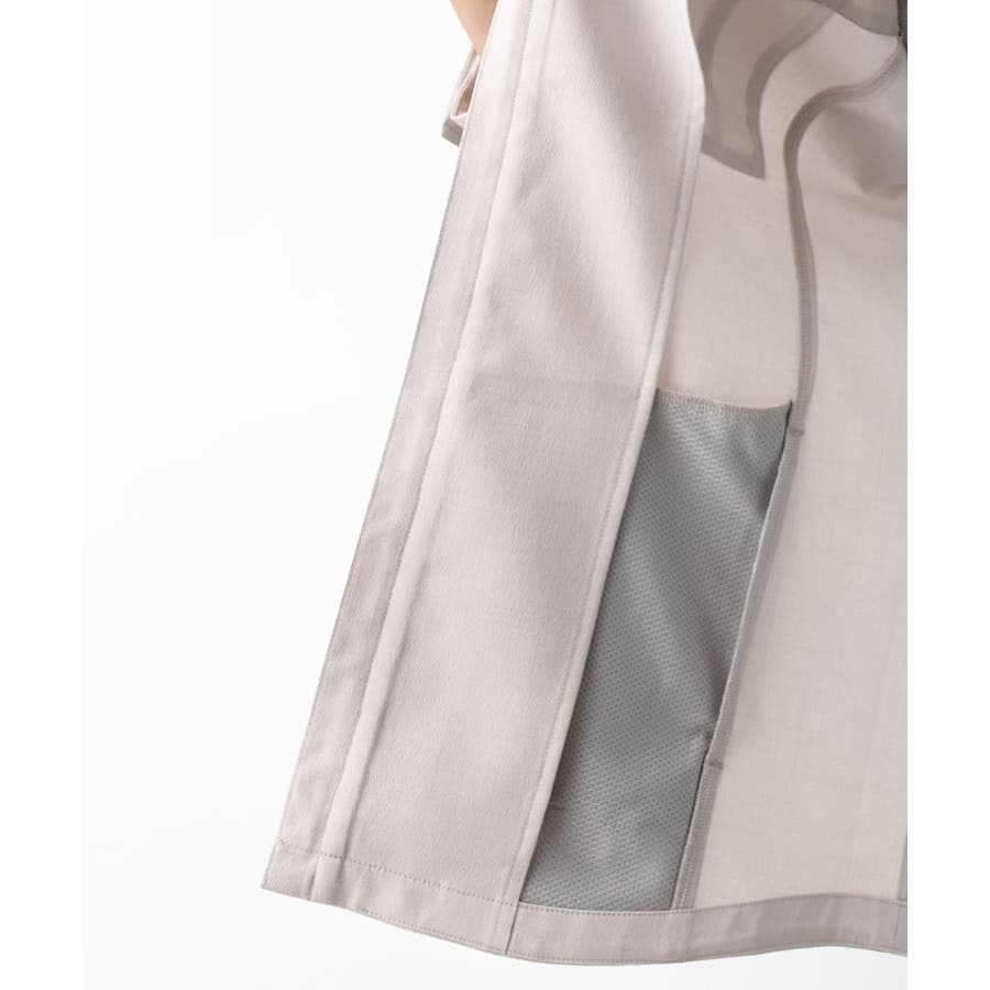 ・サラっとした風合いと速乾性のあるポリエステル糸を使用した、「接触冷感・UVカット・速乾性・防シワ性・洗濯可」による5つの機能を兼ね備えたリネンタッチの素材を使用