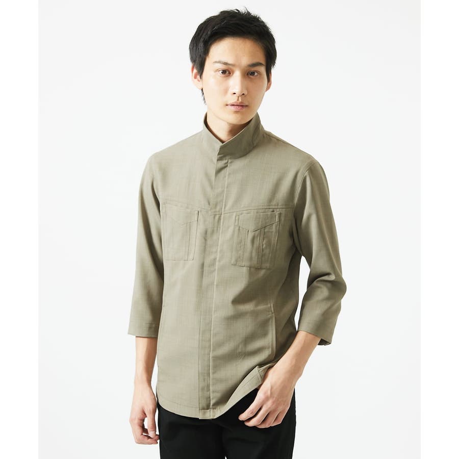 【洗える】 リネンタッチミリタリー七分袖シャツ