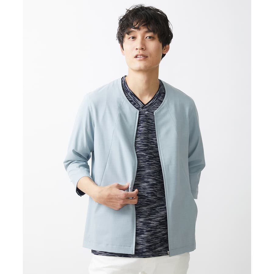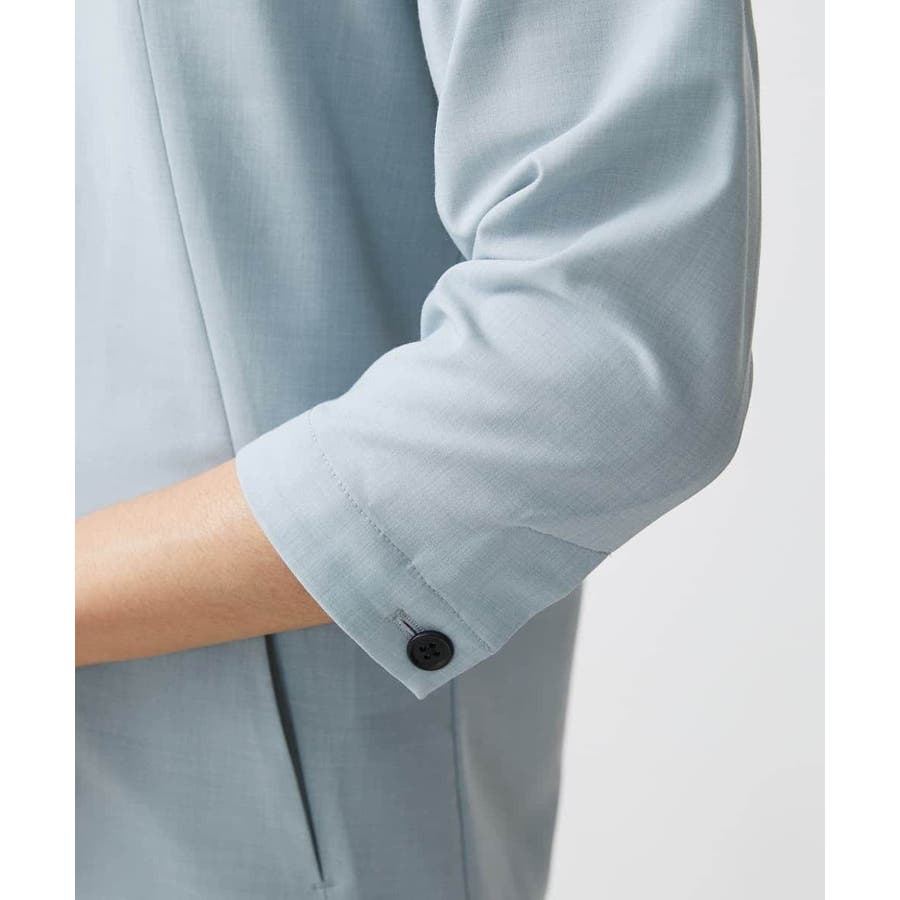 ・衿もとをノーカラーのデザインにすることでスッキリした印象にしました。