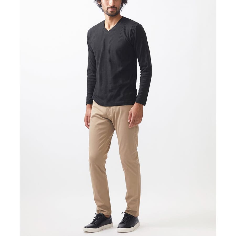 ・首元がすっきりとして見えるVネック。