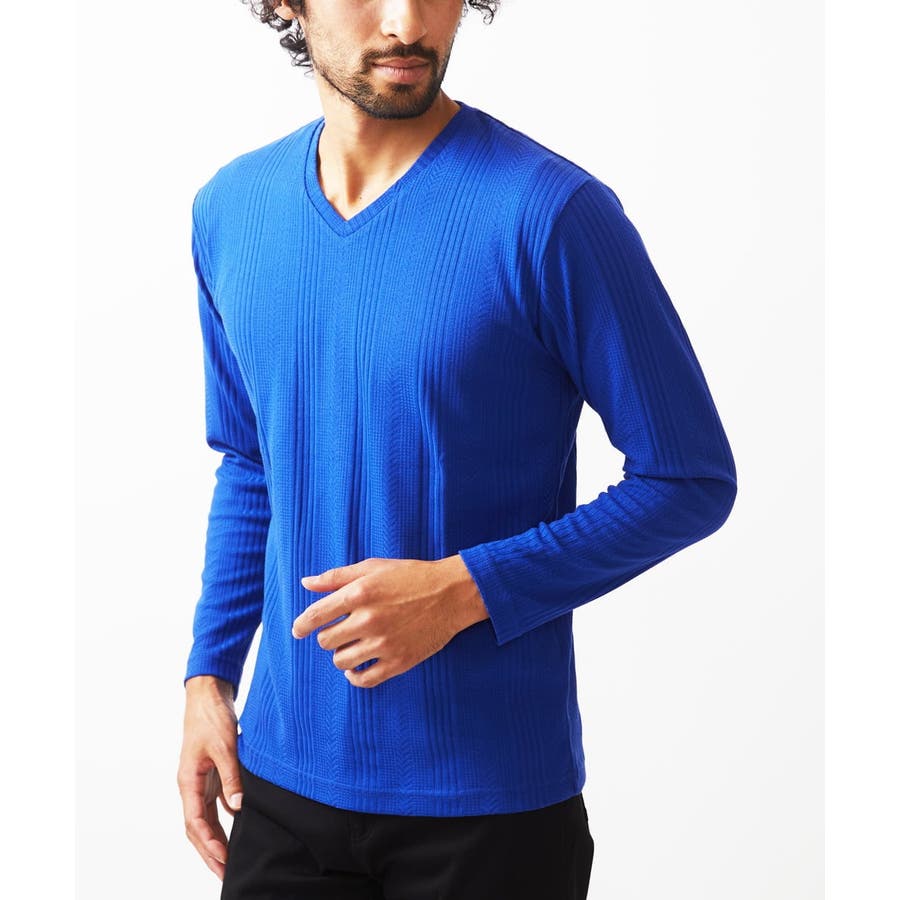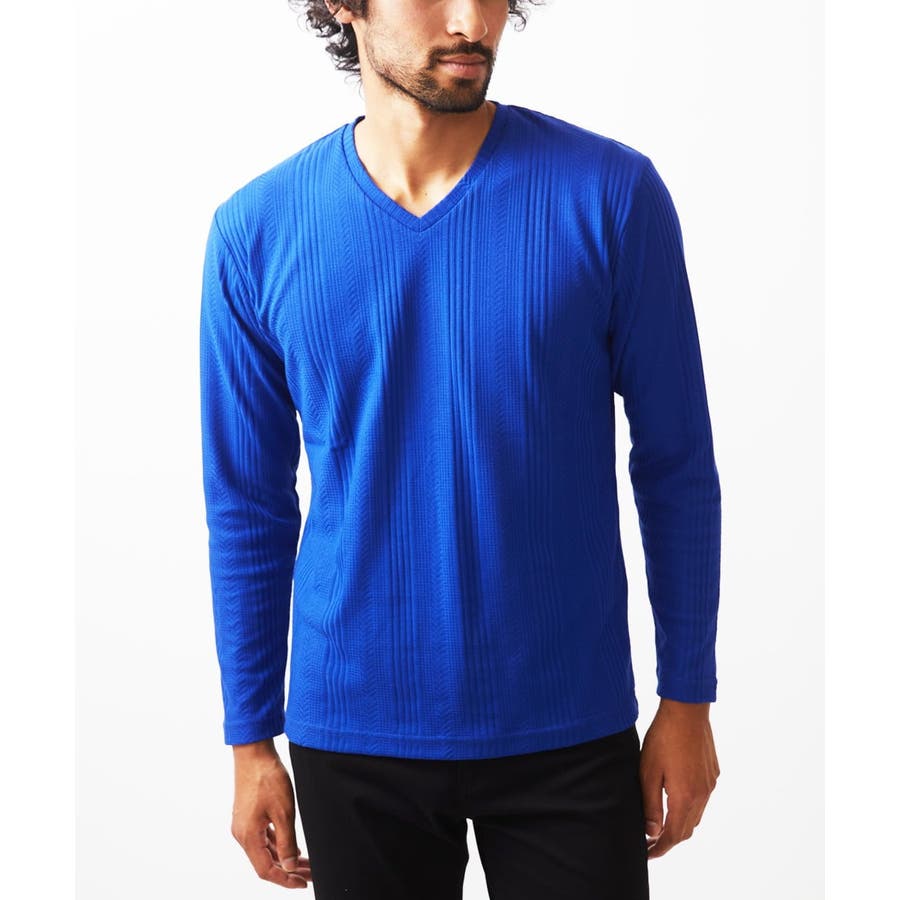Vネック長袖カットソー / ストライプへリンボンリンクス