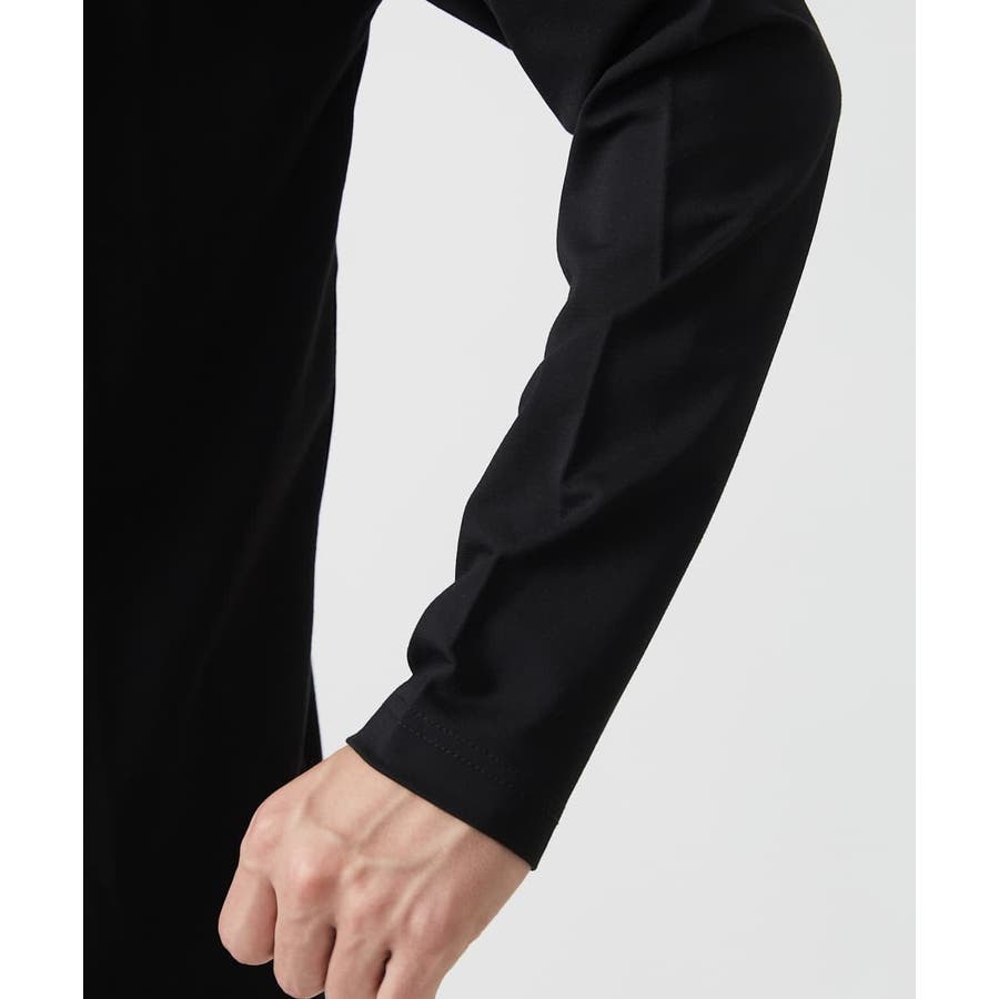 ・襟は落ち感が出るように、ポリエステルとレーヨン素材にしています。
