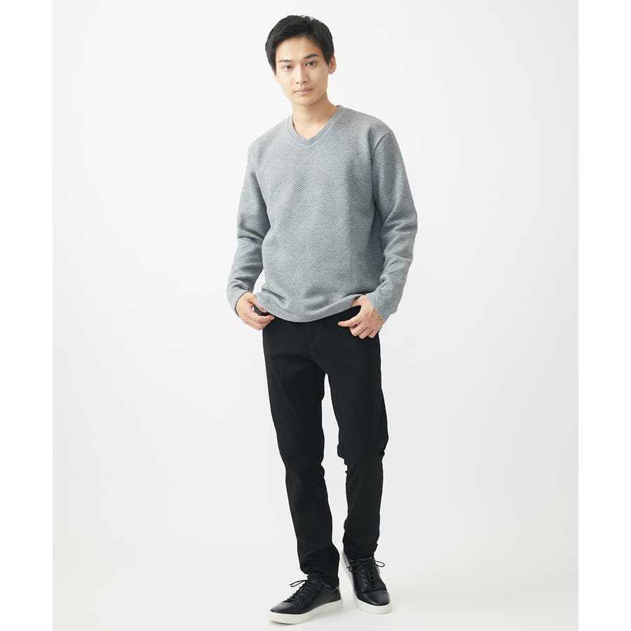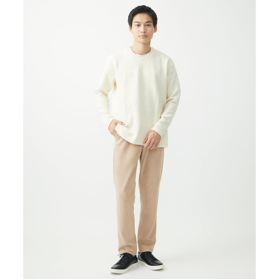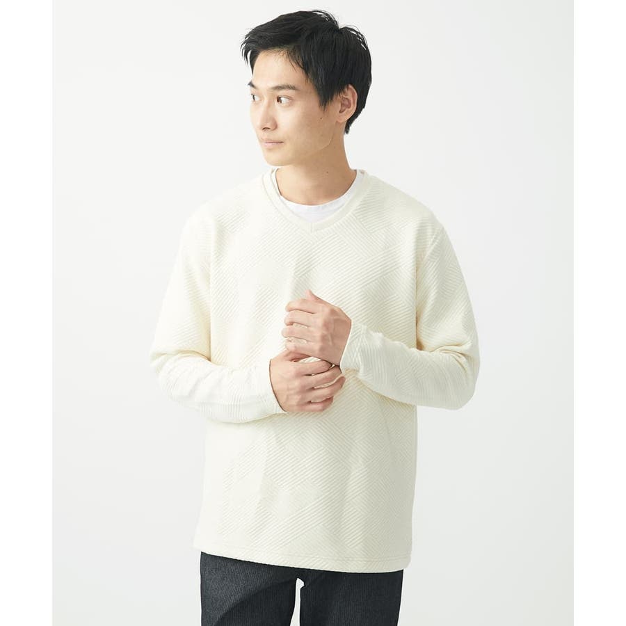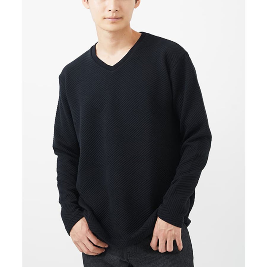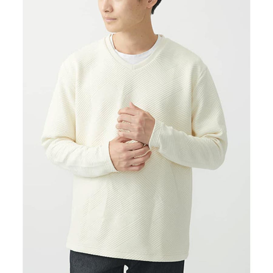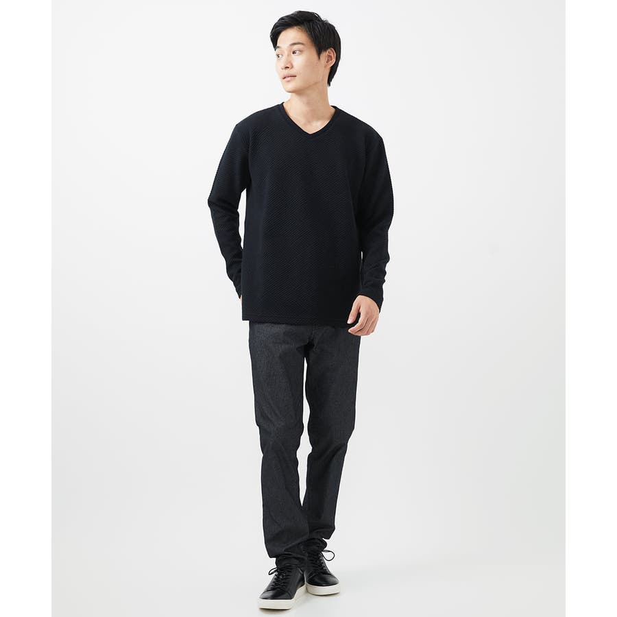 ・首元がすっきりとして見えるVネック。