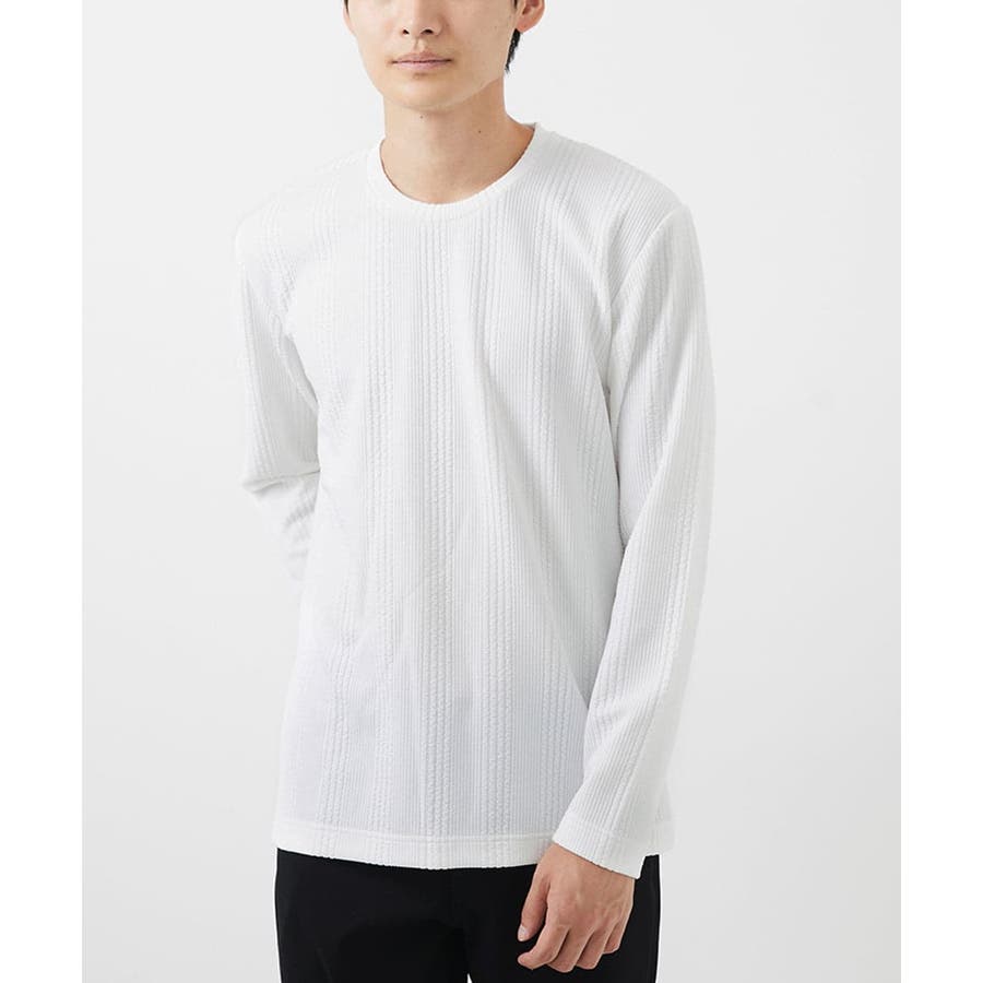 ・上品感のあるクルーネックデザインの長袖カットソー。