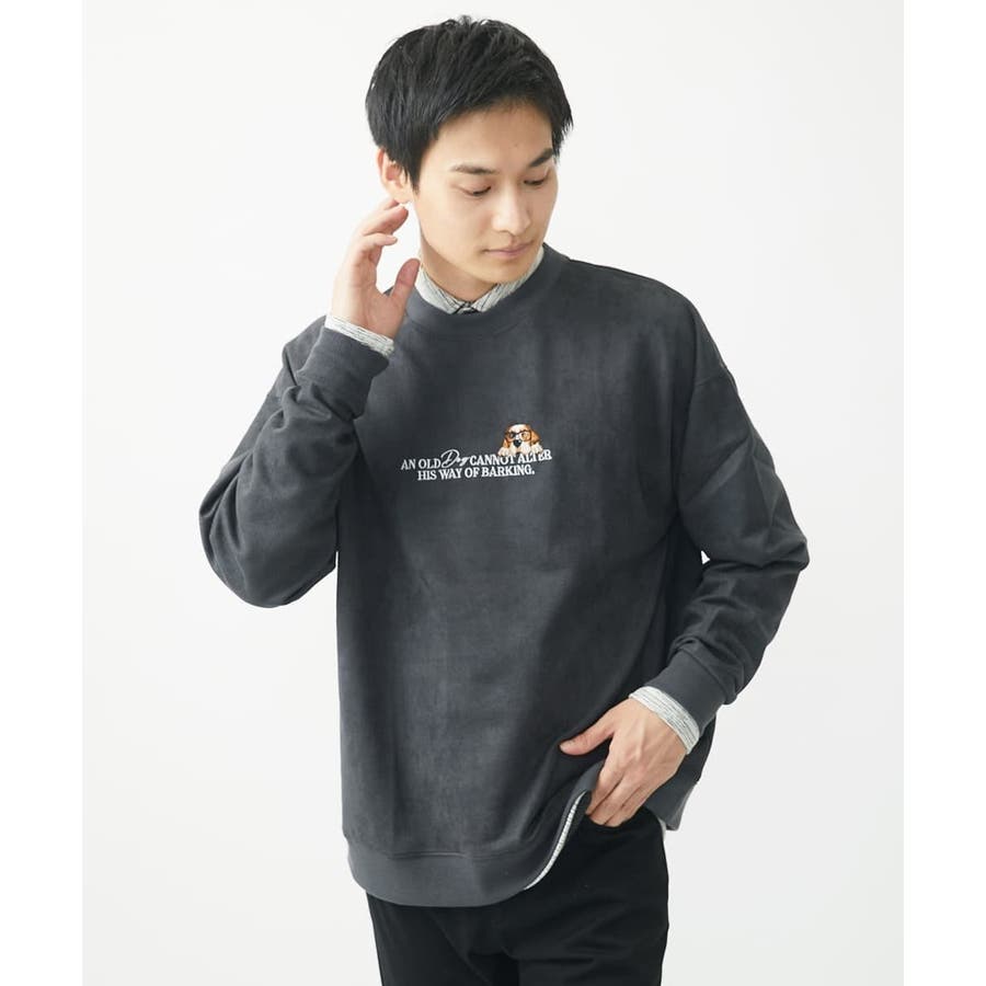 【残りわずか/ワンコ刺繍/男女兼用】ポンチスエード / ワンコ刺繍トレーナー