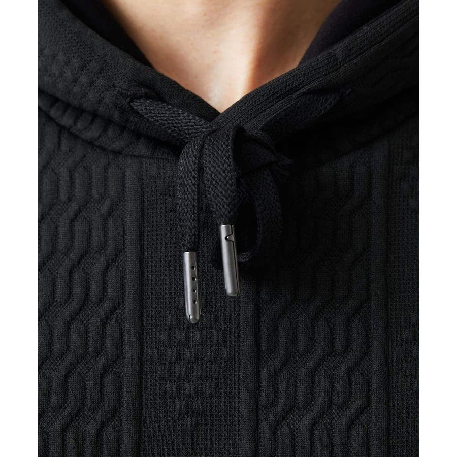 ・異なる素材の組み合わせが印象的な、デザイン性の高いパーカーです。