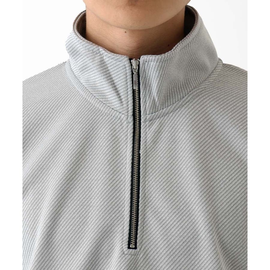 ・首元はハーフジップ仕様です。ジップが半分開くため、着脱しやすくカジュアルな印象があります。