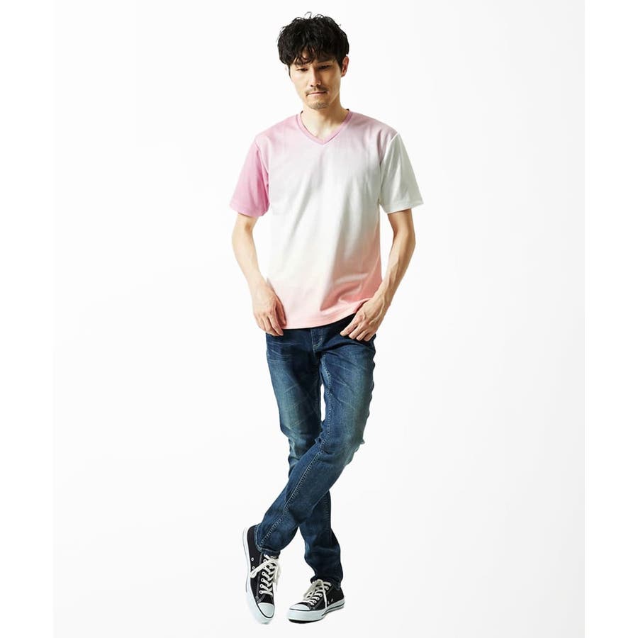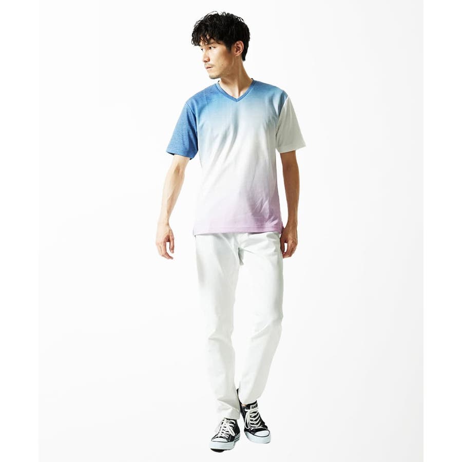 シンプルなボトムスと合わせるとトップスのグラデーションが引き立ち、