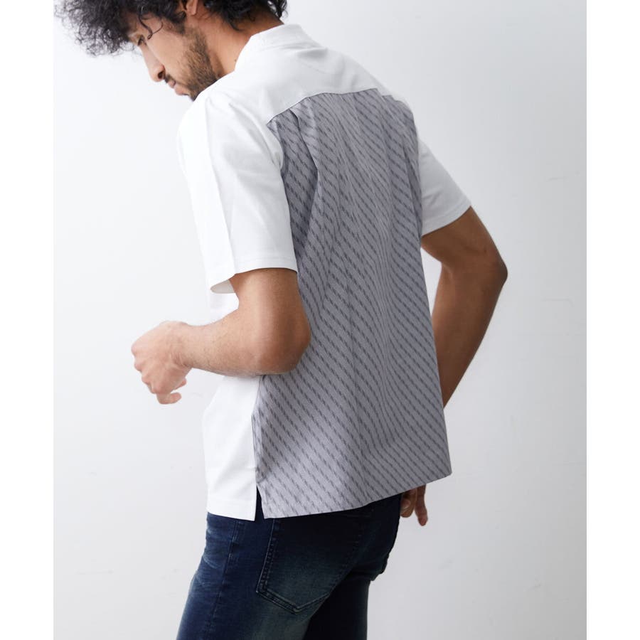 後ろ身は布帛の異素材切り替えなのでデザインもあり、一枚でも着こなせます。