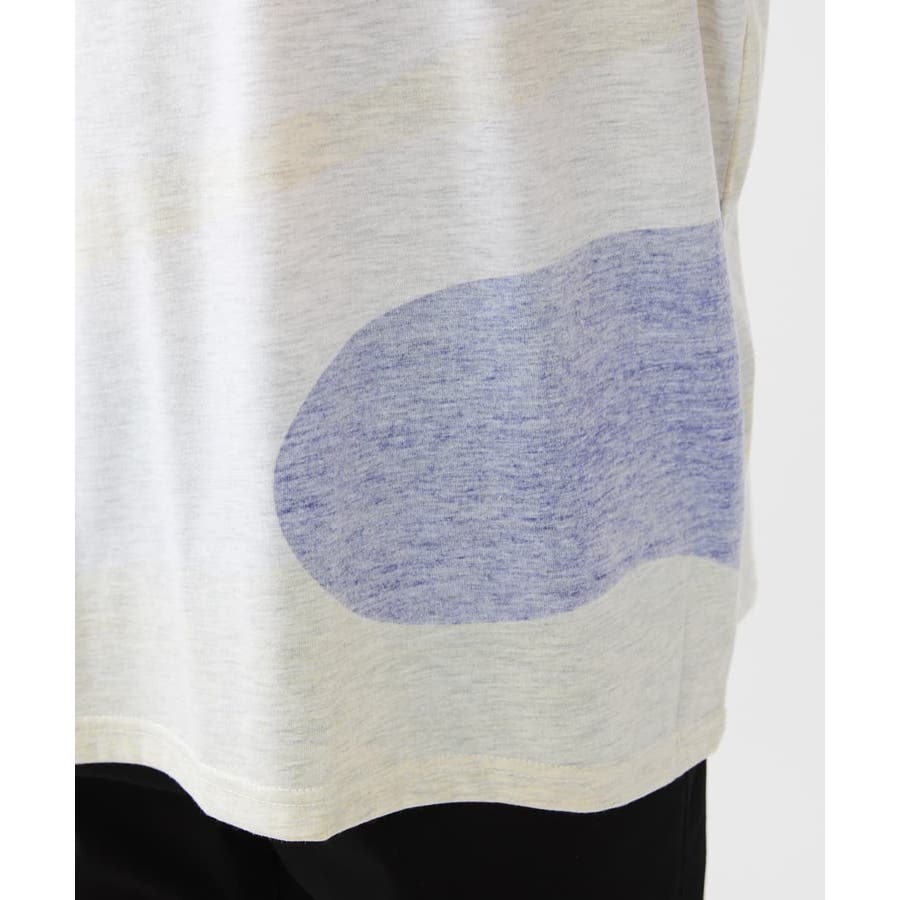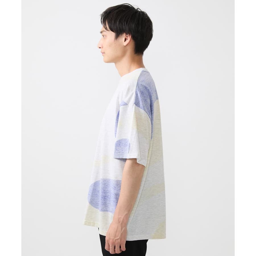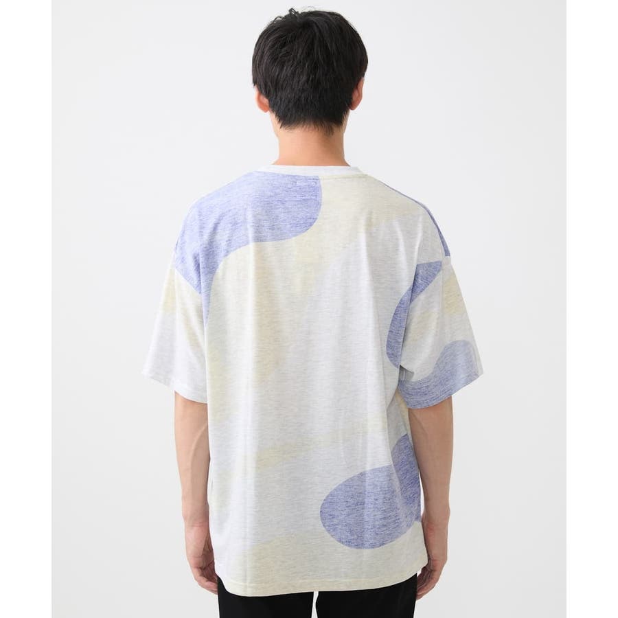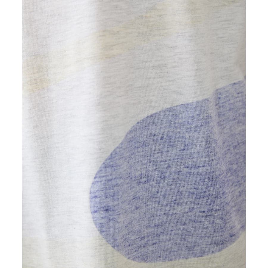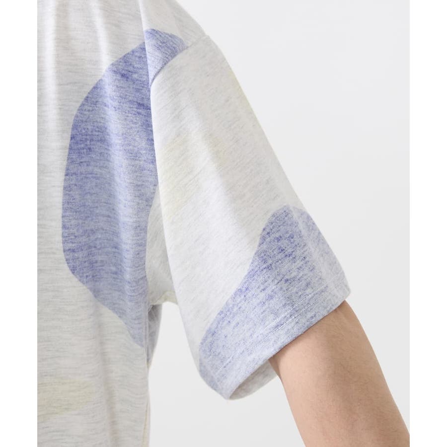 オートミール杢の天竺を使い、裏から染み込みプリントをすることで、さりげない柄の風合いを表現しました。