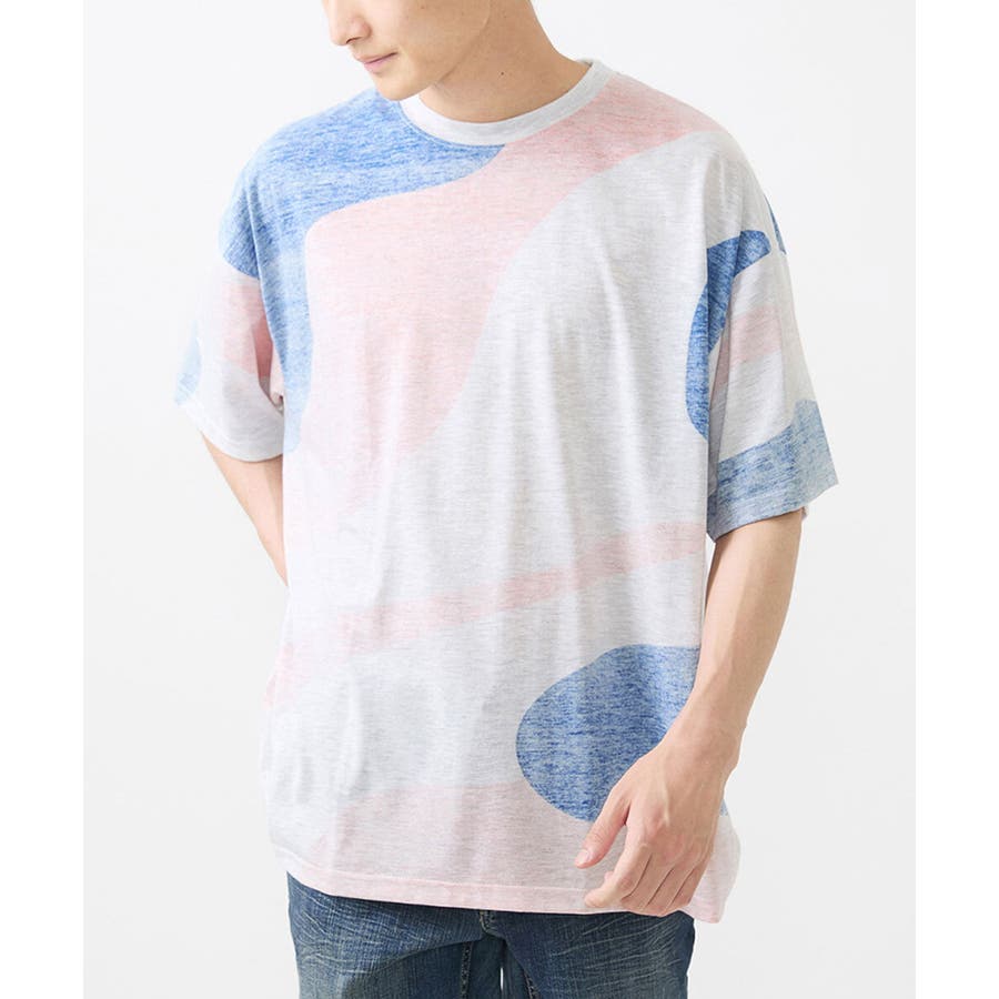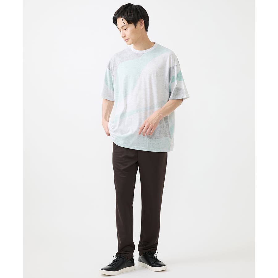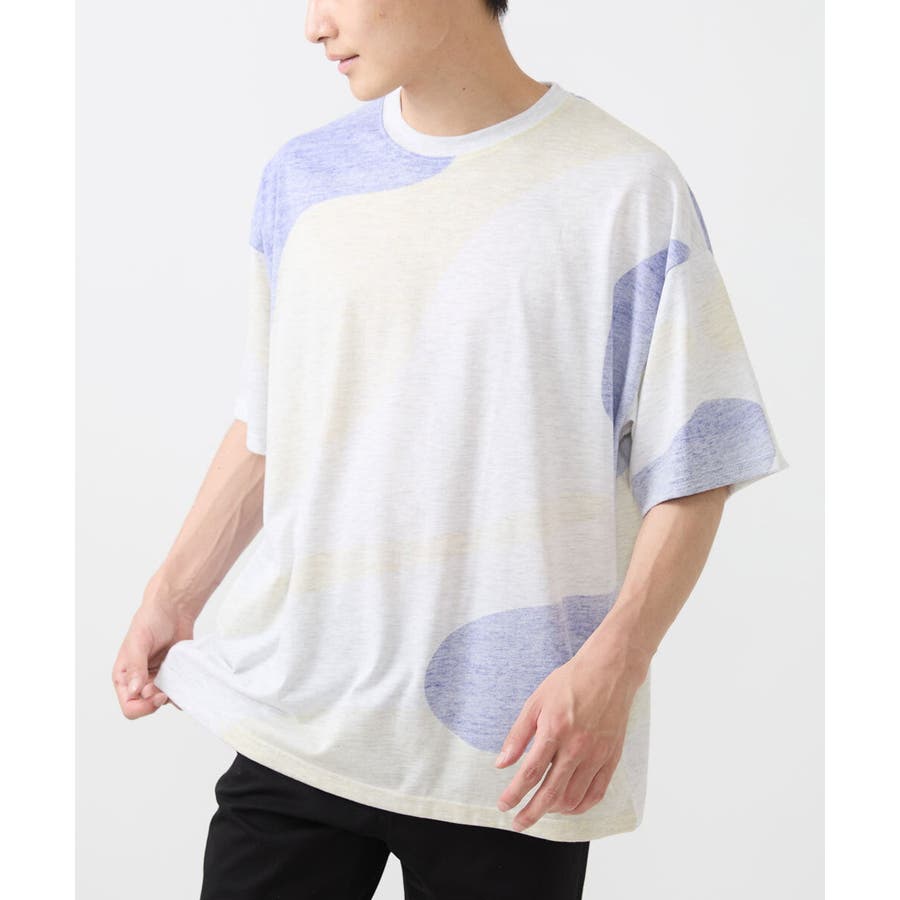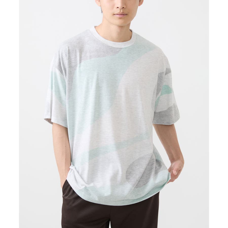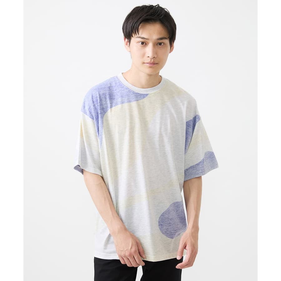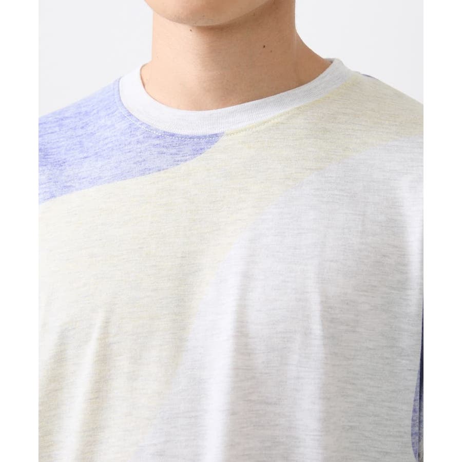 オートミール杢の天竺を使い、裏から染み込みプリントをすることで、さりげない柄の風合いを表現しました。