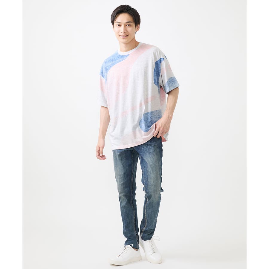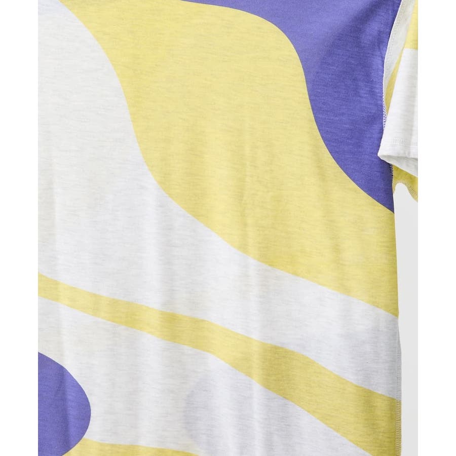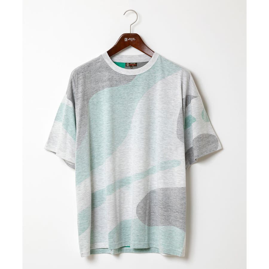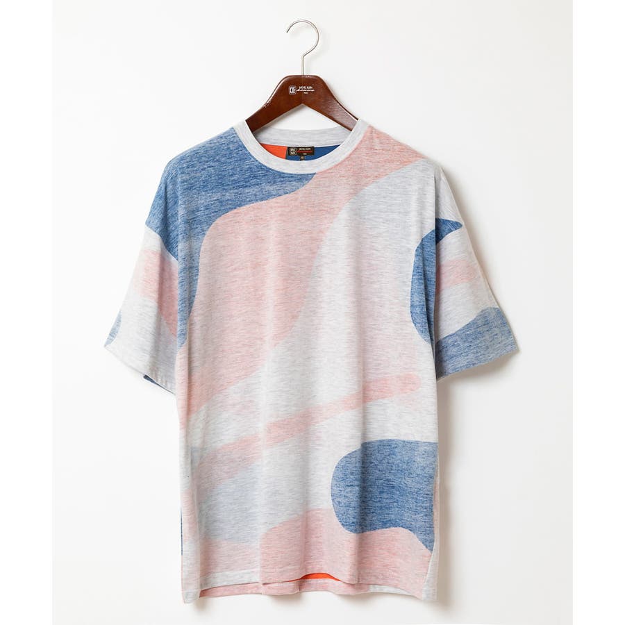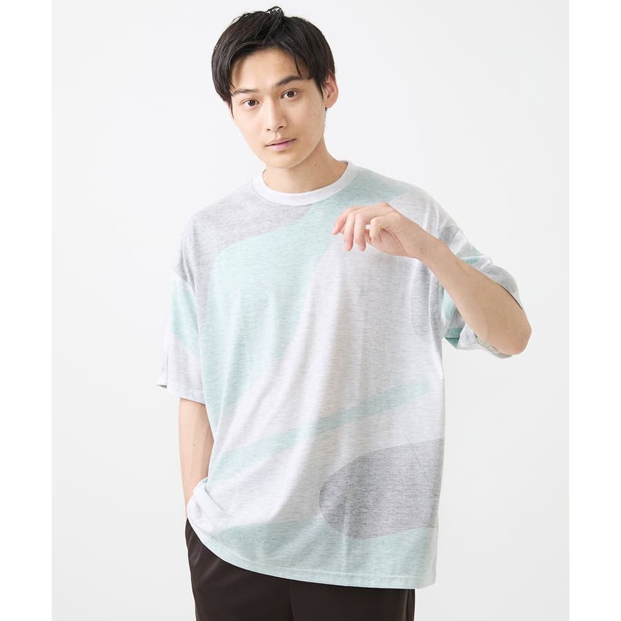 オートミール杢の天竺を使い、裏から染み込みプリントをすることで、さりげない柄の風合いを表現しました。