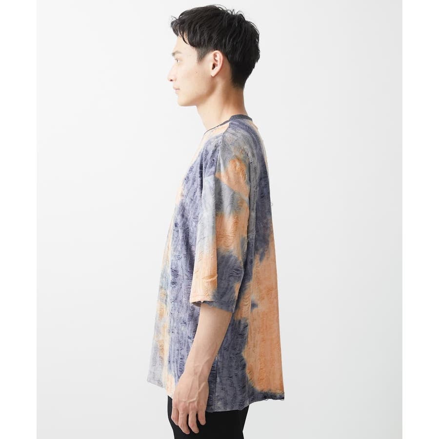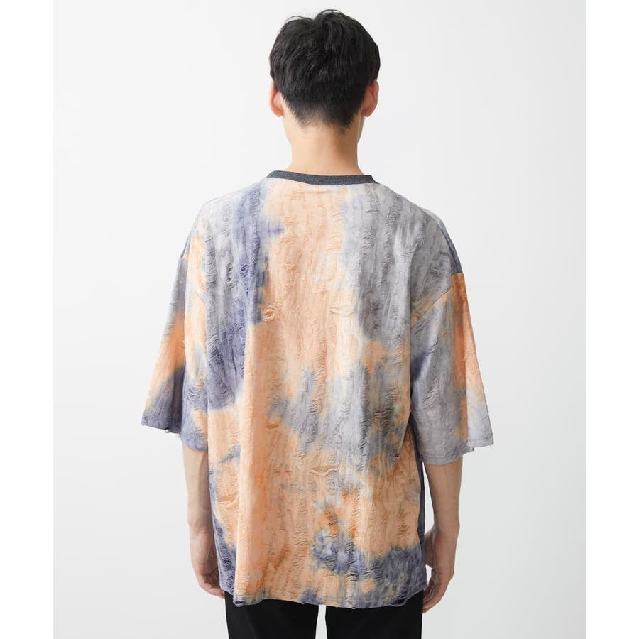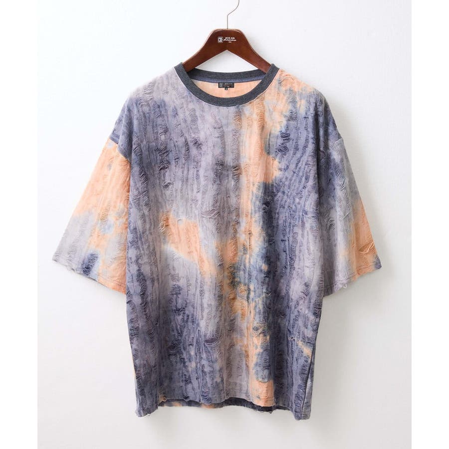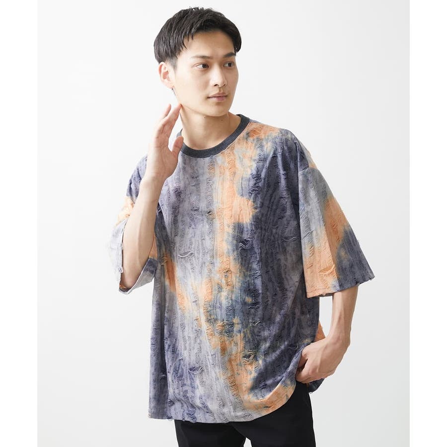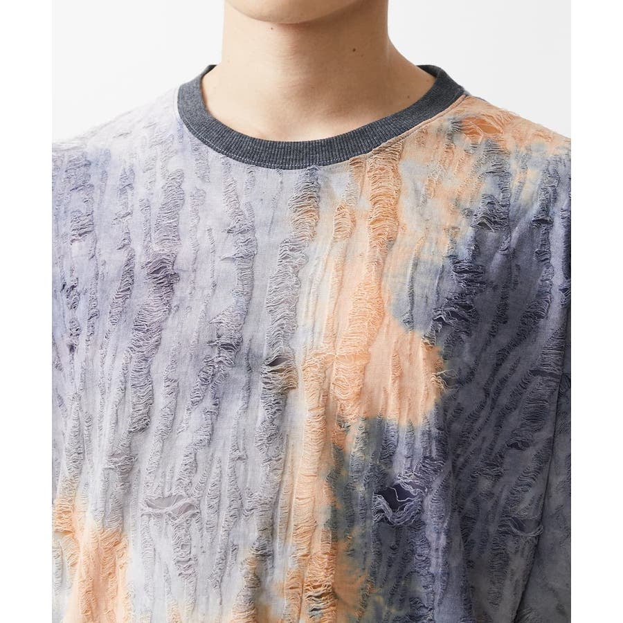 インパクトのあるタイダイ染めとダメージ加工を加えたユニークなカットソー。