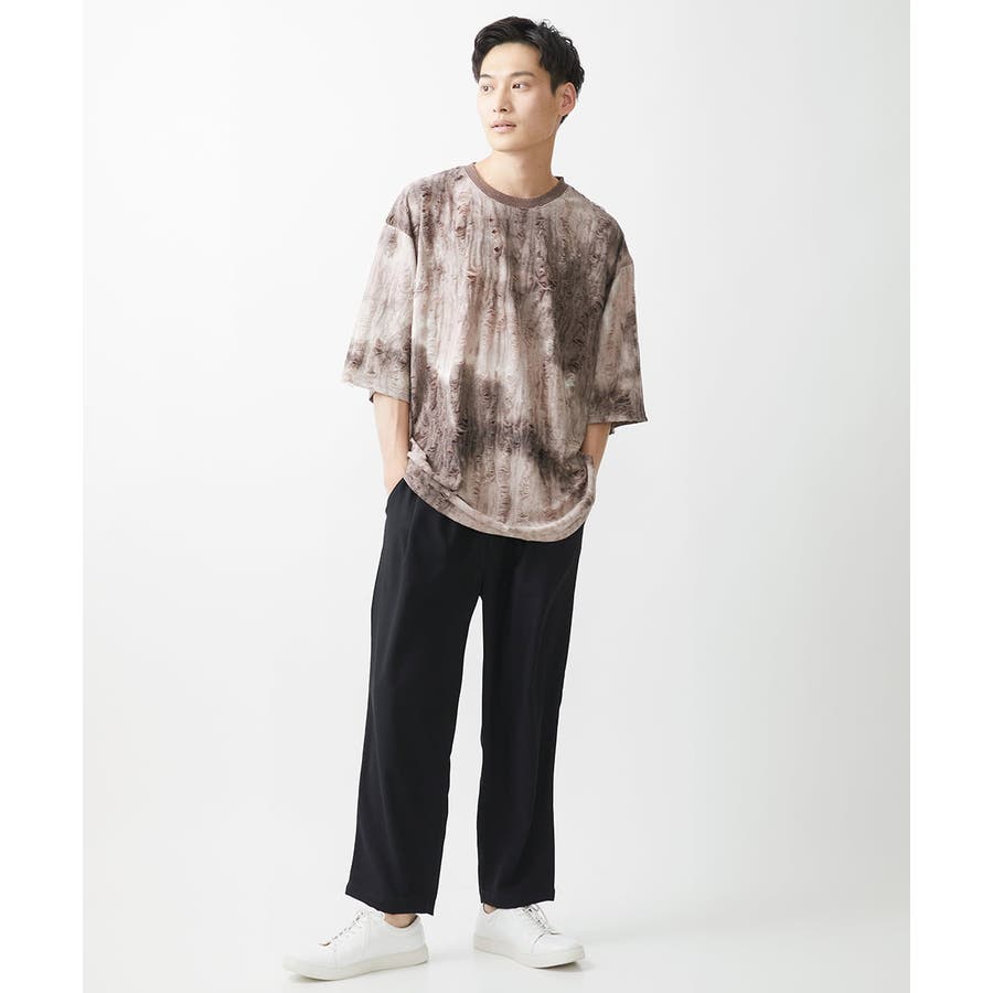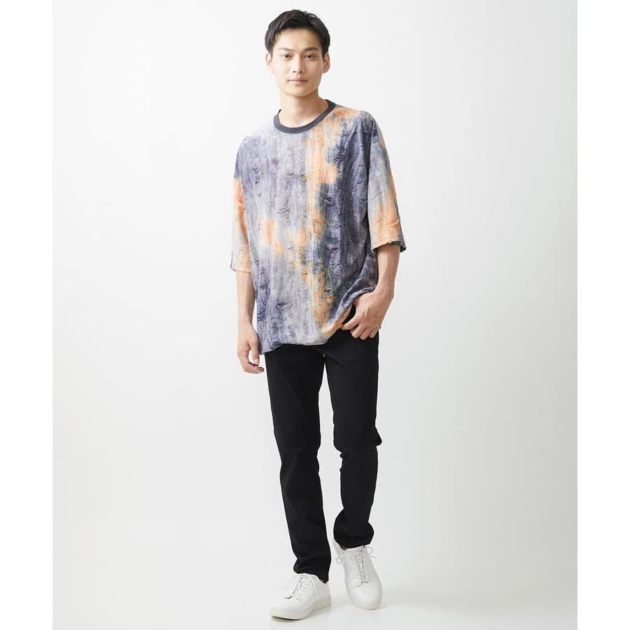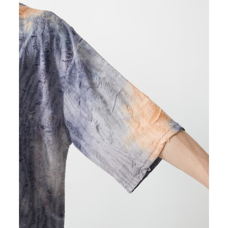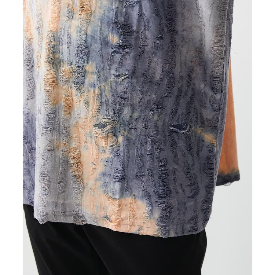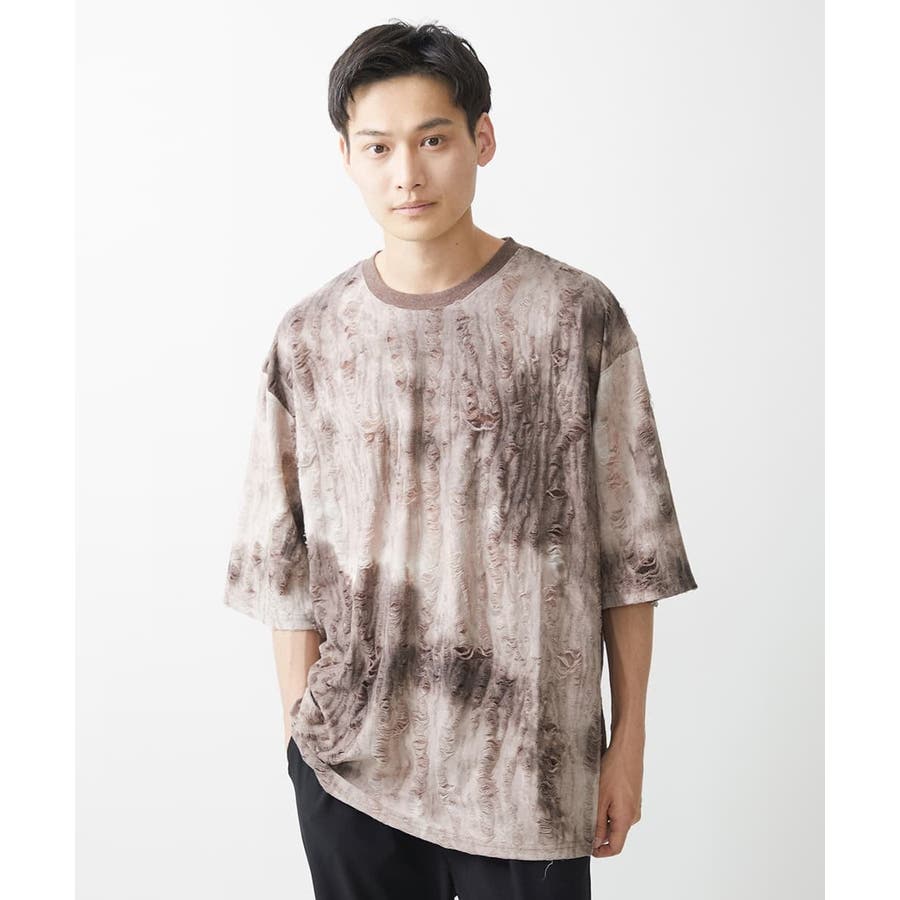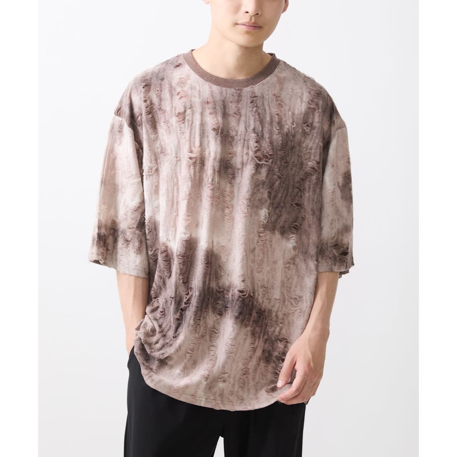 インパクトのあるタイダイ染めとダメージ加工を加えたユニークなカットソー。