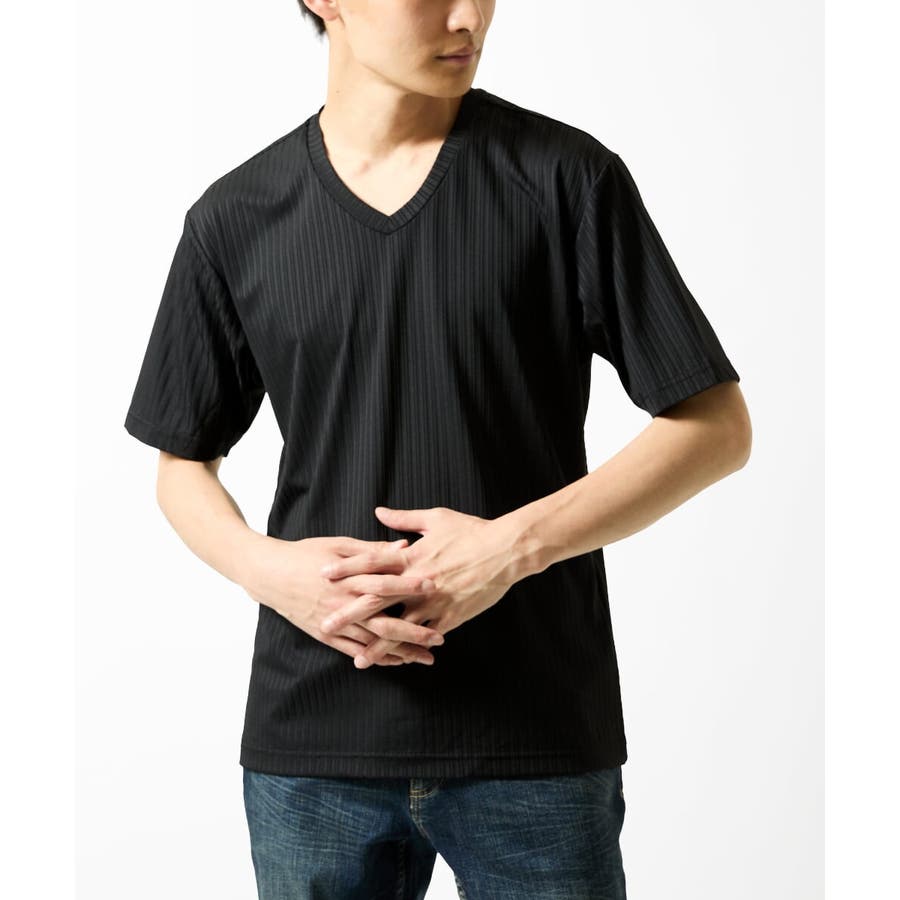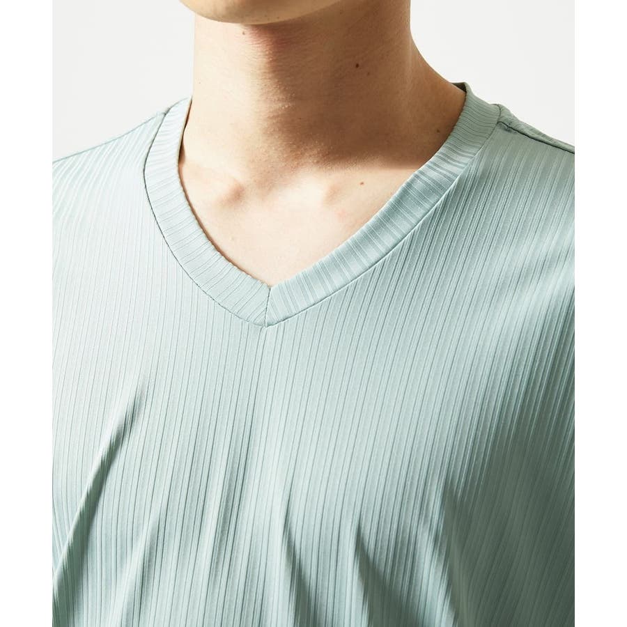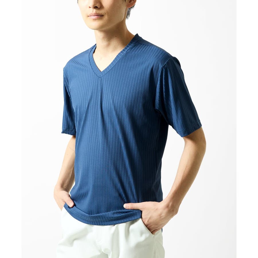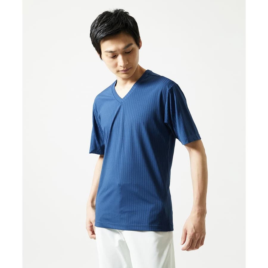 【洗える】ハリヌキテレコVネック半袖