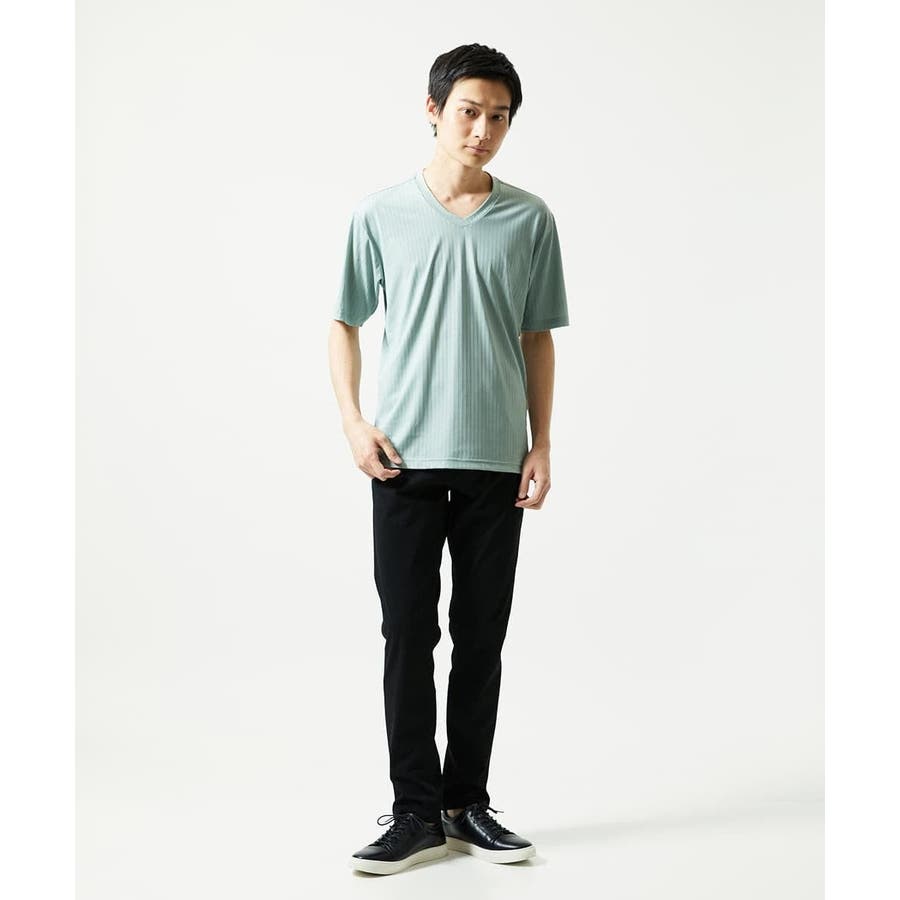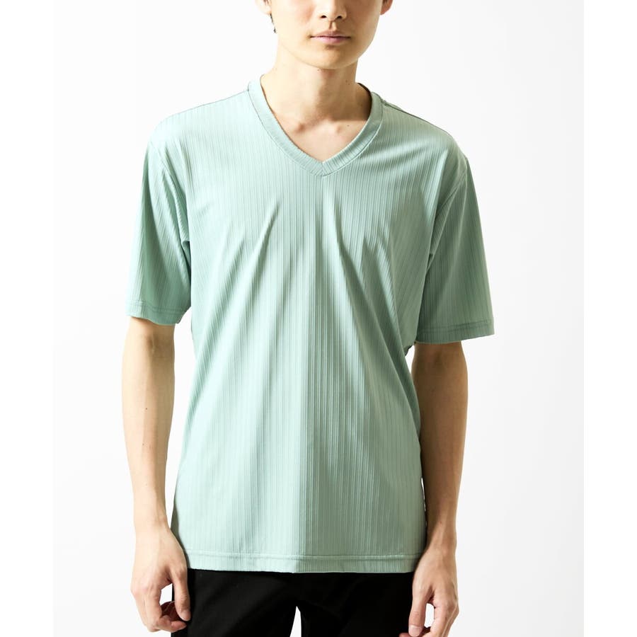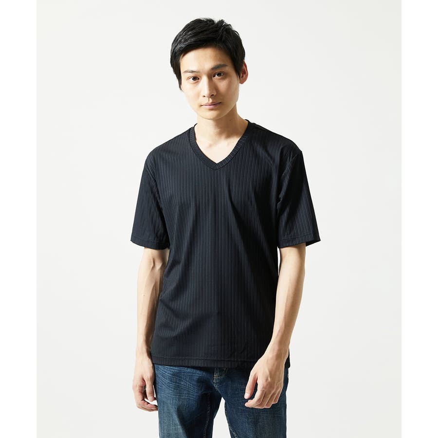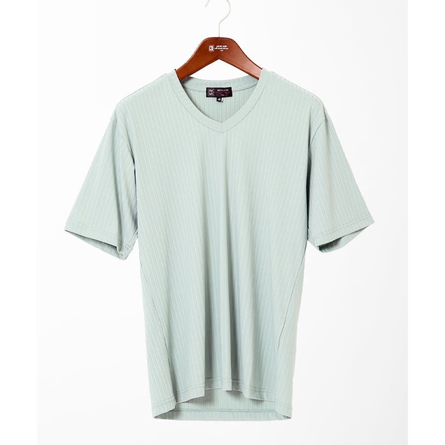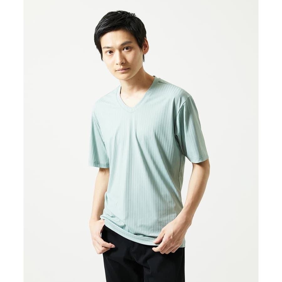 【洗える】ハリヌキテレコVネック半袖