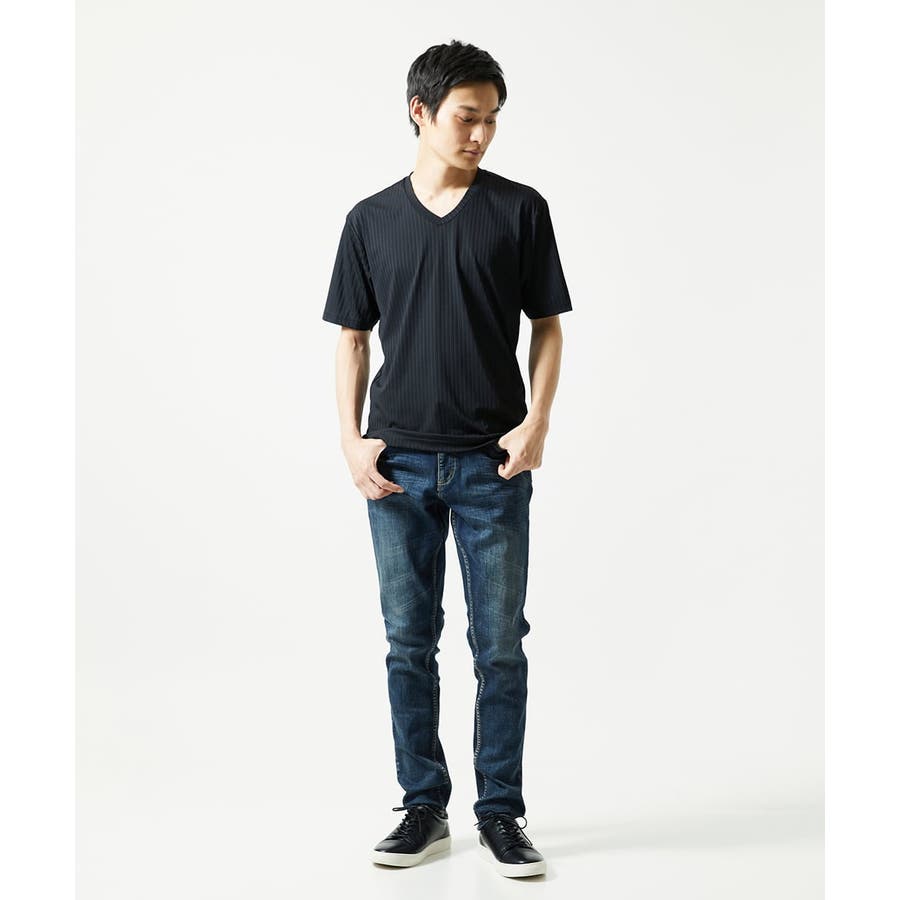 ・元がすっきりとして見えるVネックデザインです。