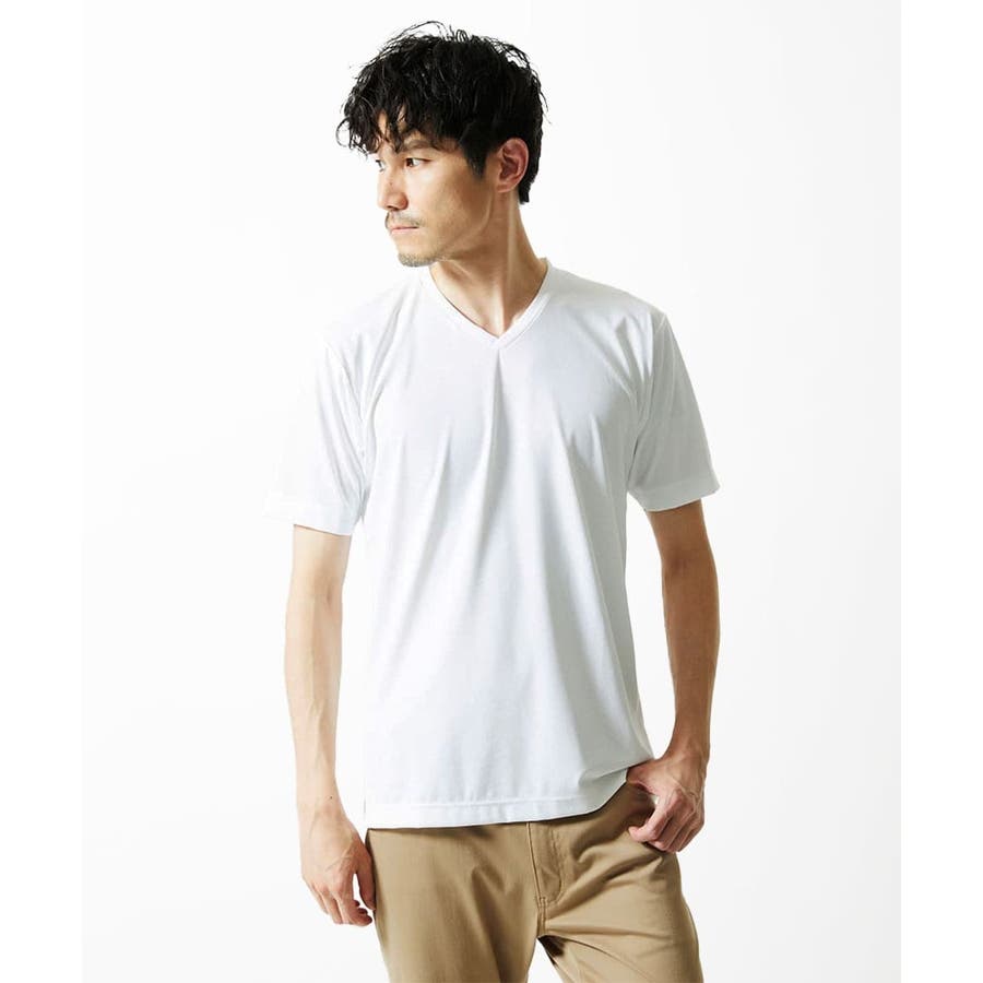 ・首元がすっきりとしたVネックデザインの半袖Tシャツです。