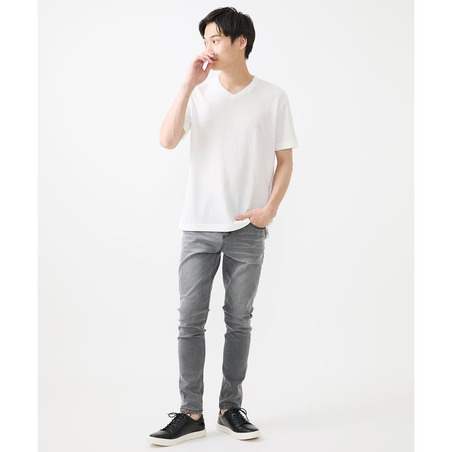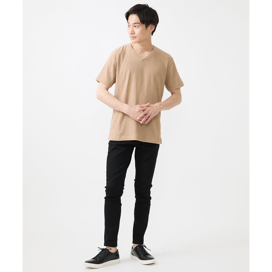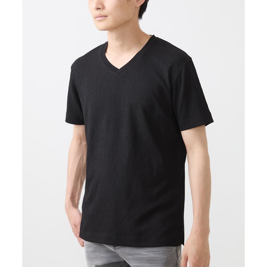 ・首元がすっきりとして見えるVネック。