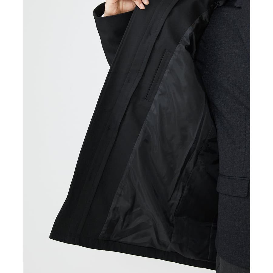 ヒップが隠れる着丈でジャケットの上からでも羽織って頂けます。