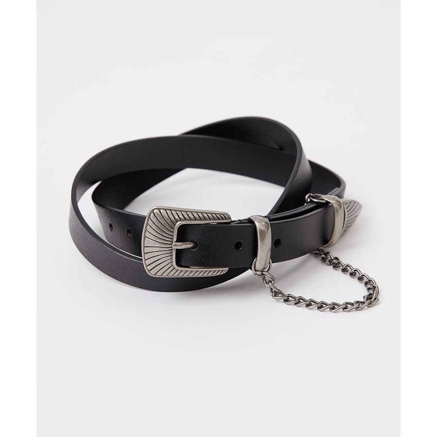トレンド感のあるウエスタン風バックルを使用したレザーベルト。