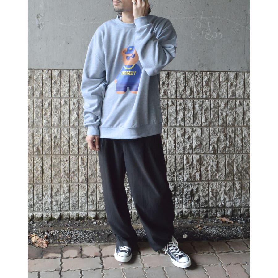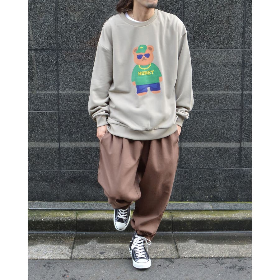 【ラフなくまプリントで部屋着としても使えるスウェット】