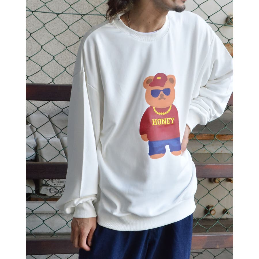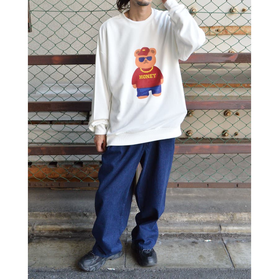 クルーネック BIG スウェット ストリート BEAR ベアー クマ 熊 くま メンズ ユニセックス プルオーバー トレーナー 韓国ファッション 長袖 カジュアル 韓国 ストリート プチプラ ロープラ オーバーサイズ 裏毛 アメカジ シンプル 韓国系 かわいい おしゃれ 部屋着