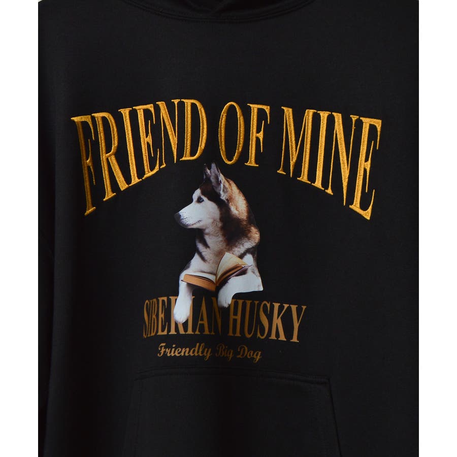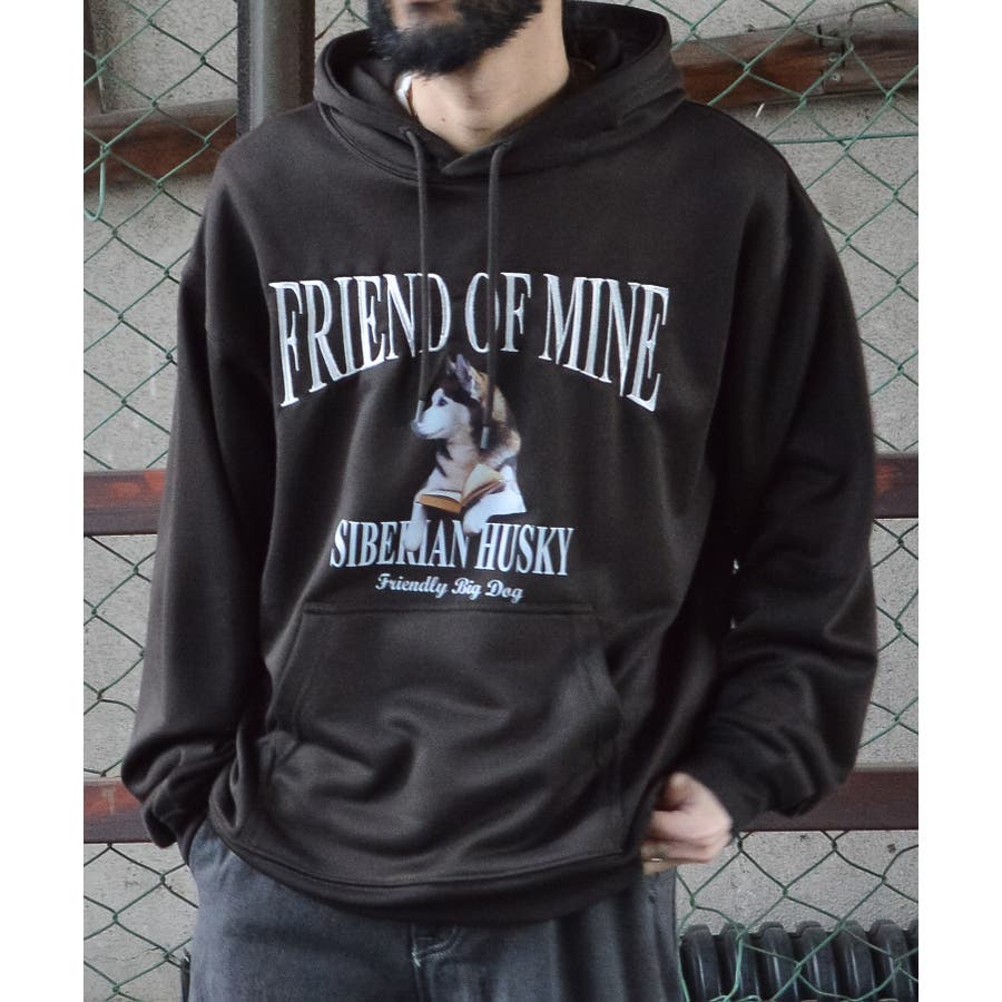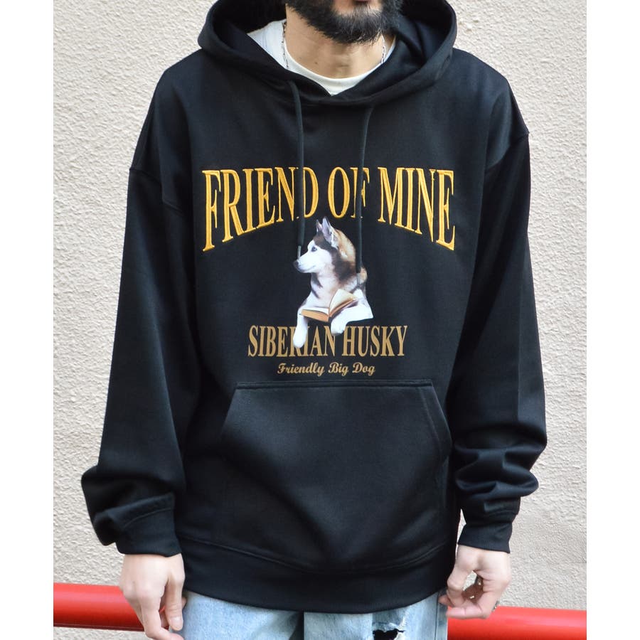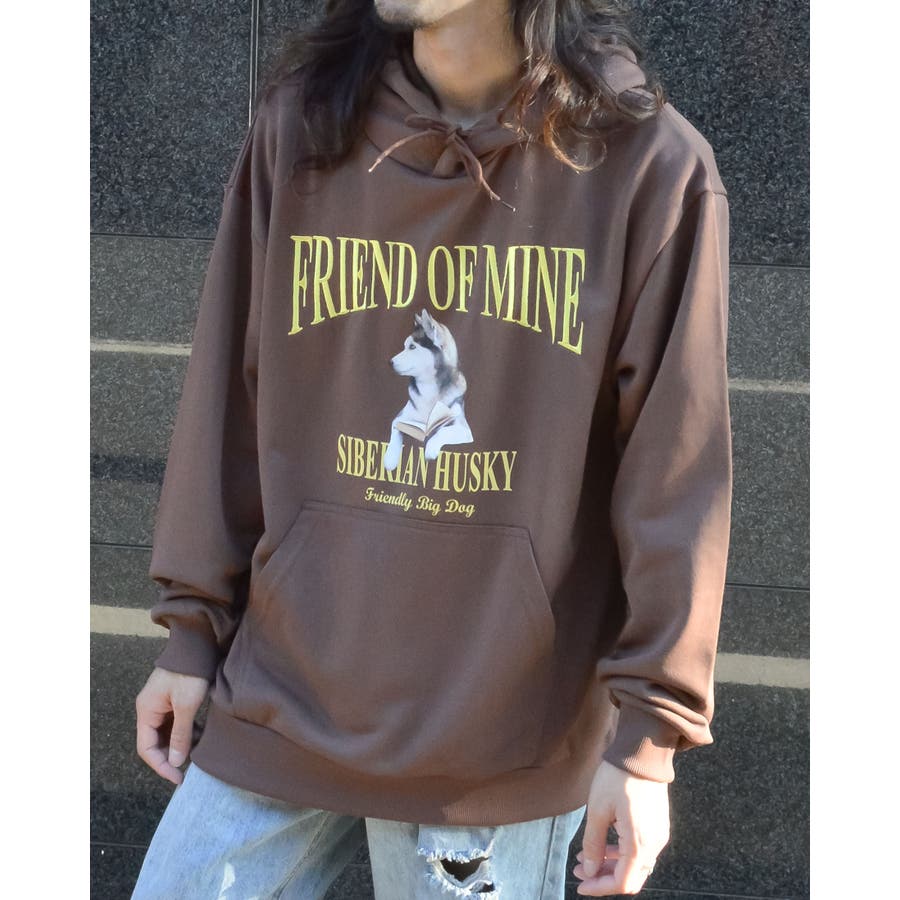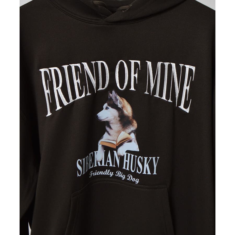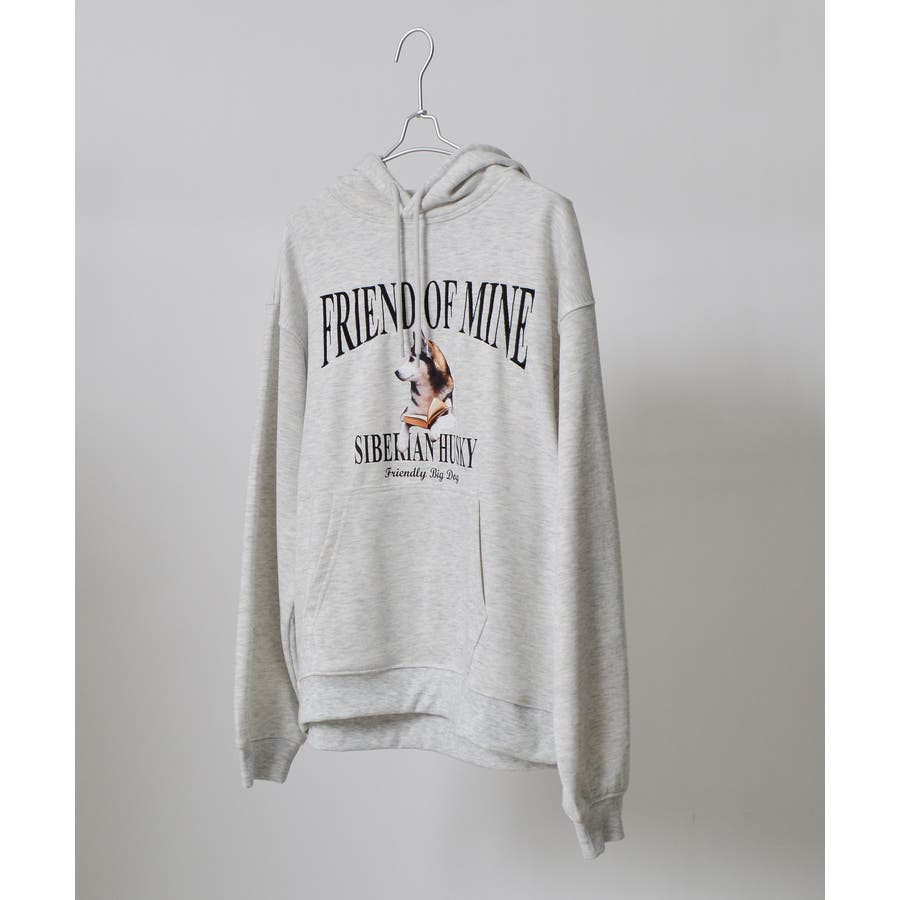 ハスキー犬プリント裏毛プルパーカー
